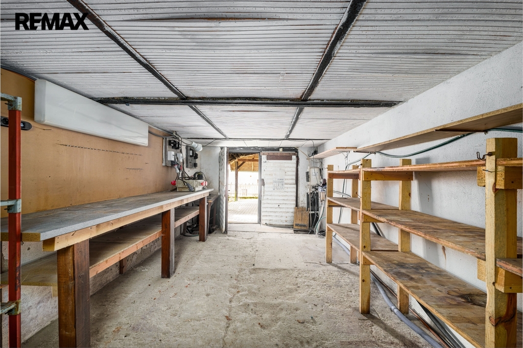 Objekt je částečně podsklepený, tento prostor (původně garáž) je v současnosti využíván jako skladové prostory (sklep, spíž) a dílna.