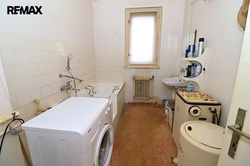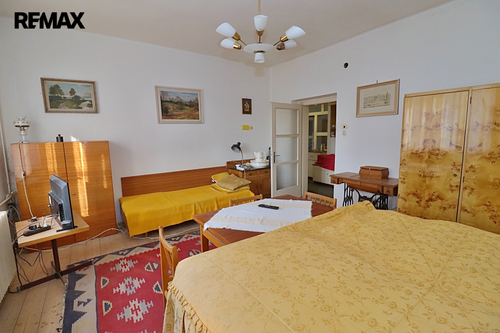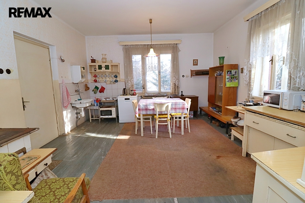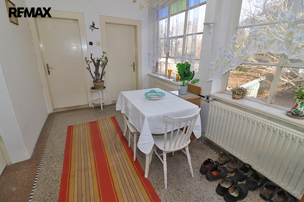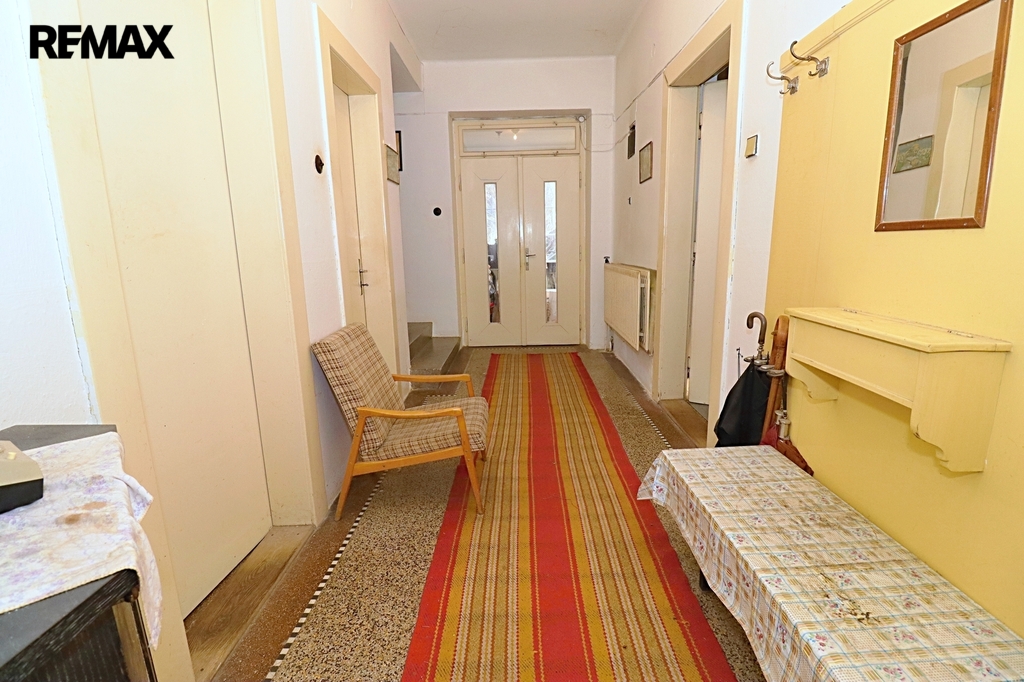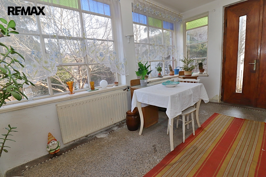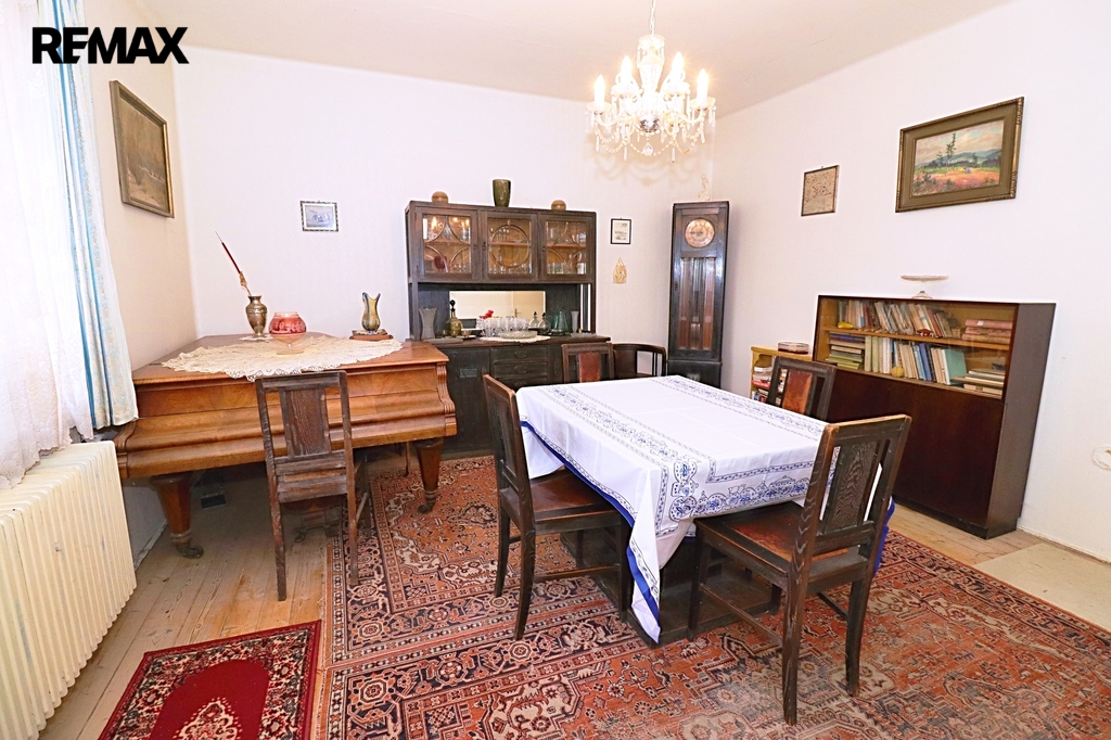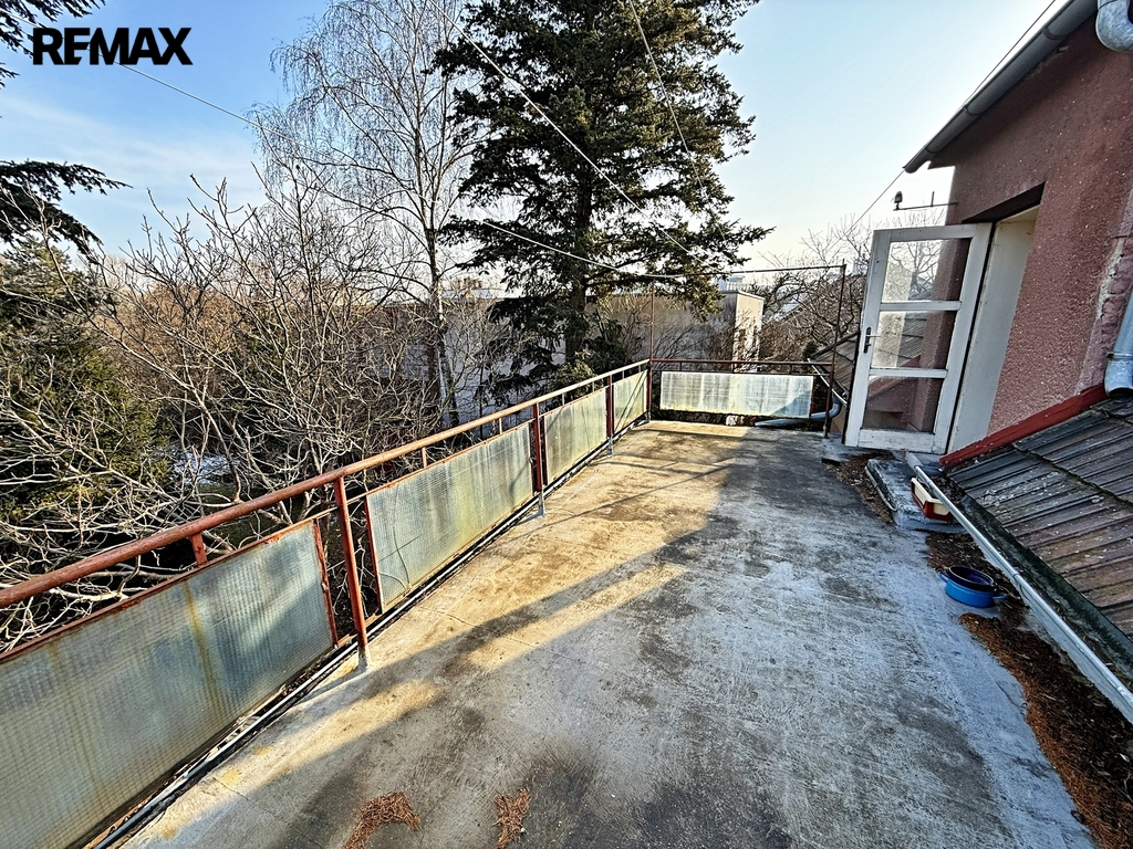 Tento samostatný cihlový dům, postavený na začátku 40. let minulého století, se nachází na prostorném pozemku o rozloze 1.729 m², z čehož zastavěná plocha činí 160 m² včetně samostatné garáže (21 m²). Obytná výměra dvou nadzemních podlaží domu je úctihodných 179,4 m². K tomu je ještě třeba připočíst půdu o výměře 15 m² - ideální pro další obytný pokoj. První podzemní podlaží je technické - je zde místnost pro skladování ovoce a zeleniny s vodárnou, dílna (původně prádelna) a kotelna. Celková výměra podzemní podlaží činí 52,5 m².