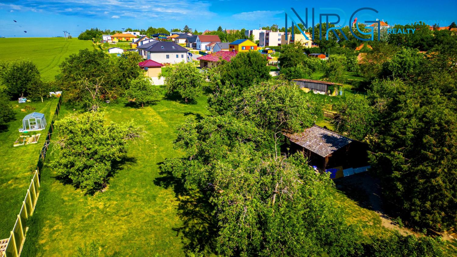 Na pozemcích se momentálně nachází ovocné stromy, na příjezdové cestě stojí dřevěná garáž určená k demolici.