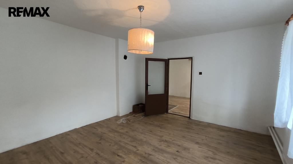 V přízemí domu se nacházejí tři rekonstruované pokoje, kuchyň a nově opravená koupelna. Vnitřní prostory jsou světlé, vzdušné a působí velmi útulně. V jednom z pokojů je částečně obložená zeď s krbovými kamny, které spolehlivě vytopí minimálně dva sousední pokoje, případně i další při otevřených dveřích.
