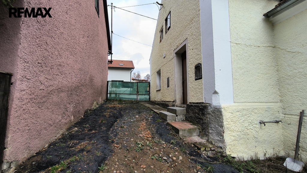 Na oploceném pozemku je dostatek prostoru pro odpočinek, zahrádku i parkování auta. Příjezd je zajištěn z veřejné komunikace přes velká uzamykatelná vrata, která poskytují majitelům potřebné soukromí a bezpečí.