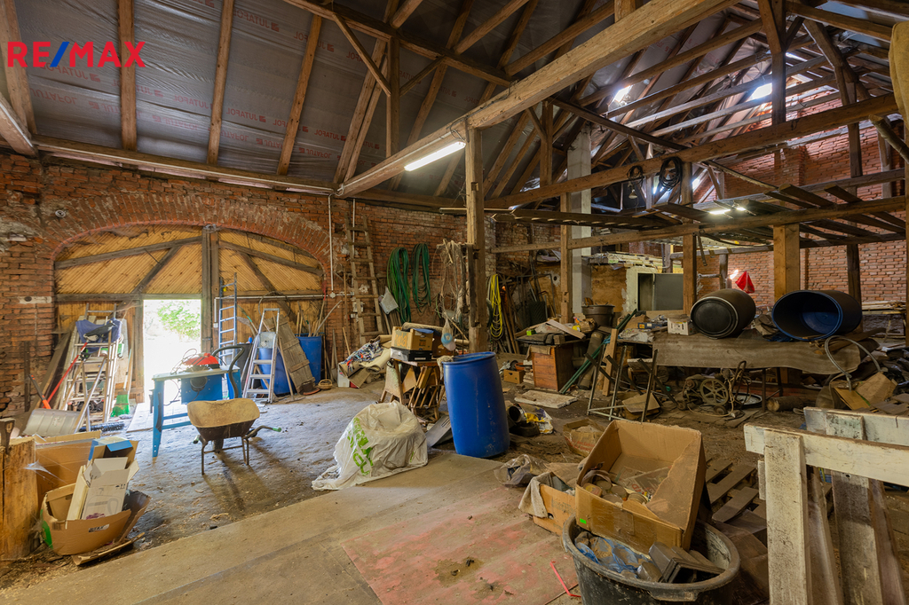 - Jedna přilehlá stodola (178 m²) – možnost využití jako dílna, sklad nebo přestavba na obytnou či rekreační část