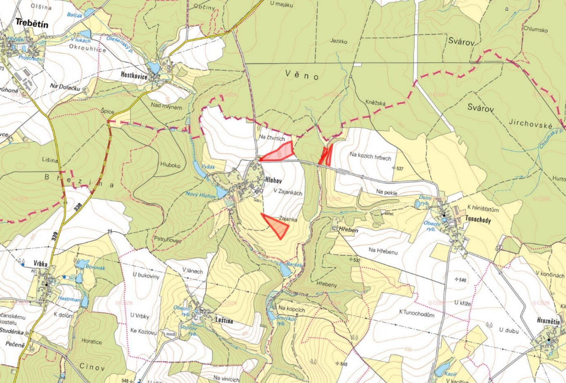 Předmětem prodeje jsou pozemky zapsané na listu vlastnictví 215 pod parcelními čísly 141/7, 141/13, 182 a 217 v KÚ Hlohov a na listu vlastnictví 215 pod parcelními čísly 880 a 555 v KÚ Tunochody. Tyto pozemky jsou k prodeji do 100% vlastnictví. Jejich společná výměra je 59 764 m2, převážně orné půdy.