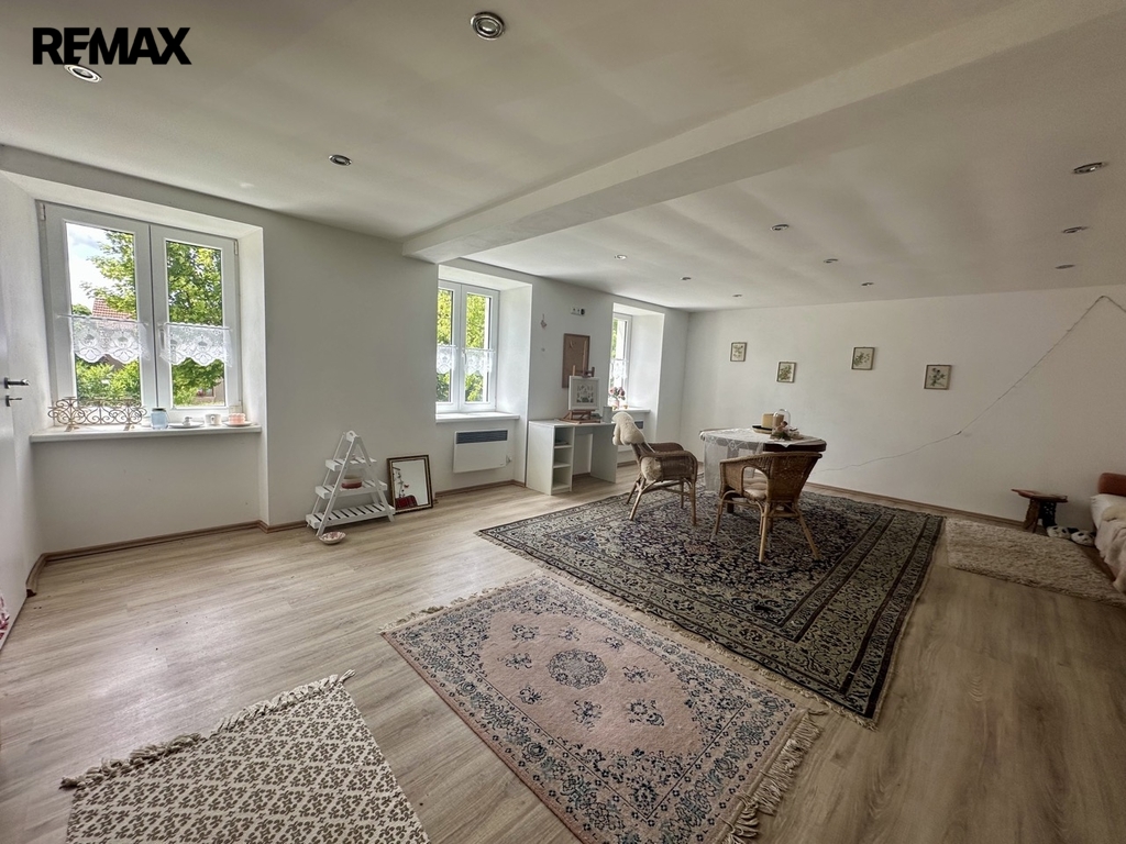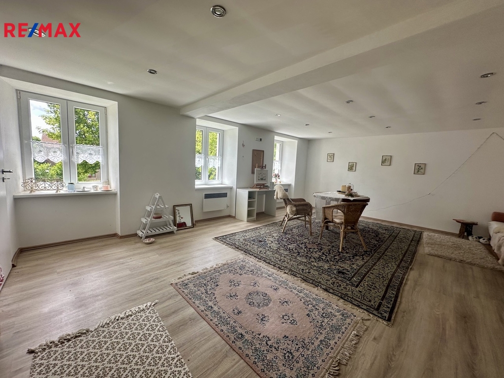 Dům nabízí 3 prostorné pokoje, kde k obývacímu pokoji přináleží kuchyňský kout. Aktuální obytná část je tedy o dispozici 3+kk. Lze rozšířit o připravené podkroví. Stav nemovitosti umožňuje okamžité nastěhování. Rodiny s malými dětmi ocení také přístup k upravenému pozemku, kde mohou relaxovat na čerstvém vzduchu.