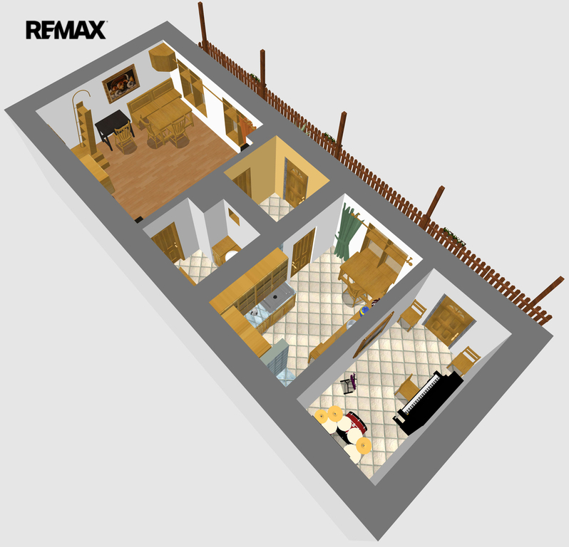 V přízemí domu se nachází předsíň, kuchyně, obývací pokoj a koupelna, dále pak samostatná místnost místnost s vchodem přímo ze zápraží (lze upravit jako další pokoj s vchodem z kuchyně). V prvním patře domu se nachází pokoj s balkonem a půda, kde je možnost vybudovat půdní vestavbu. Do patra vedou příkré tzv. mlynářské schody.