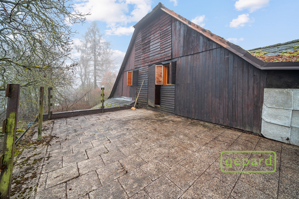 Zastavěná plocha činí 327 m² a užitná plocha dosahuje 146 m². Celková plocha pozemku je 3012 m², z nichž 2/3 jsou svažité směrem k lesu.