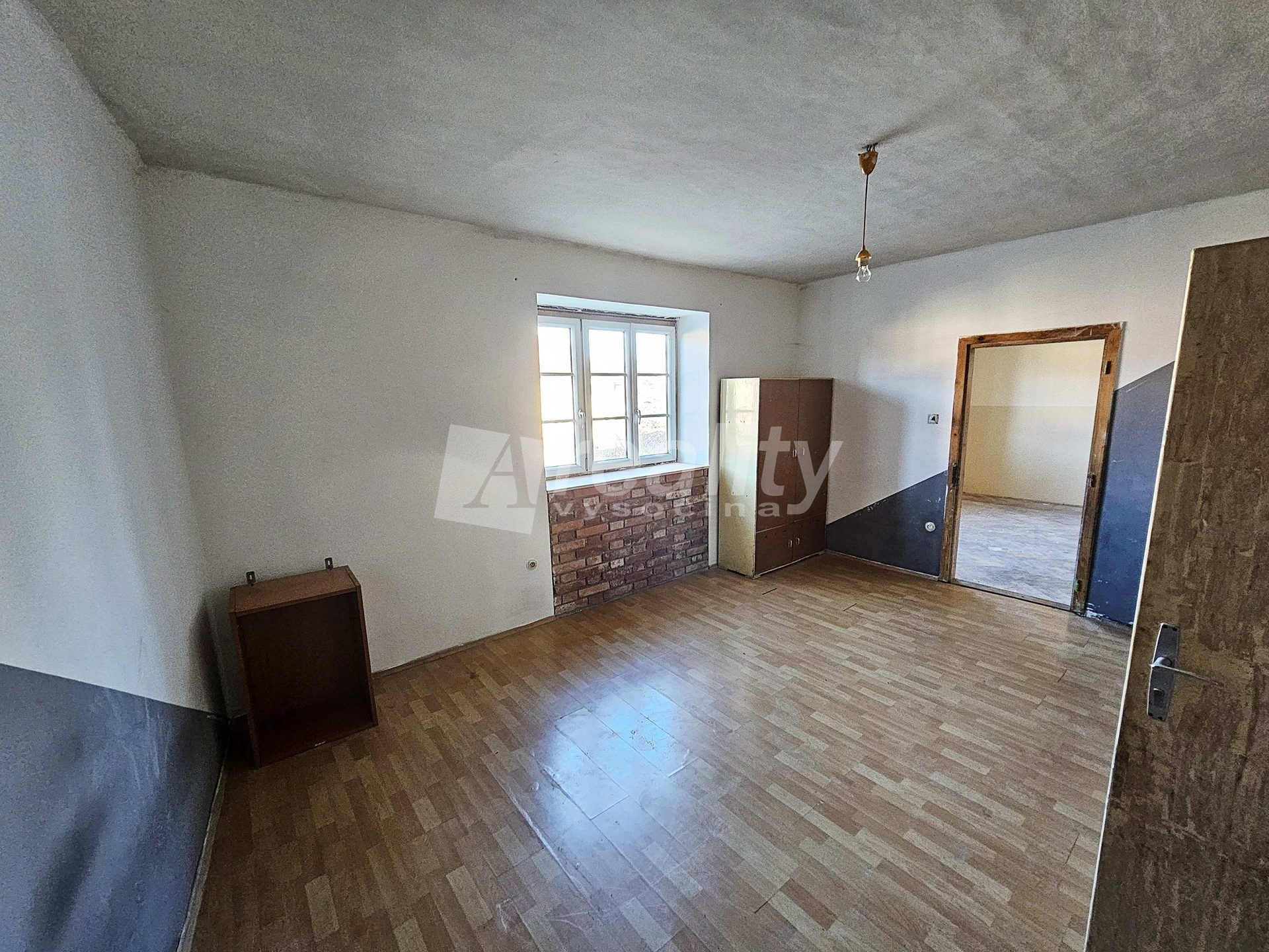 Přední obytná část je určena spíše k rekonstrukci. V obývacím pokoji a ložnici s orientací do ulice jsou plastová okna. Dominantou je velká kuchyň, která může sloužit i jako pokoj s kuchyňským koutem. Dále je zde možnost půdní vestavby. Do domu je přiveden obecní vodovod, aktuální vytápění zajišťují kamna, v případě potřeby je přímo ve zdi domu plynová přípojka. Přístup do dvora je umožněn vysokým krytým průjezdem, který lze využít i k parkování vozidla. K tomuto účelu slouží i vedlejší garáž, kam se za sebe vejdou dva osobní automobily. Na tuto část navazuje chlév/dílna. V zadní části se pak nachází dvě stodoly, které mohou mít širokou škálu využití. Lze zde vybudovat vesnické bydlení, ustájit zvířata, umístit zemědělskou a jinou techniku, případně uskladnit rozměrný majetek. Do této zadní části je také umožněn samostatný přístup a příjezd z obecní komunikace.