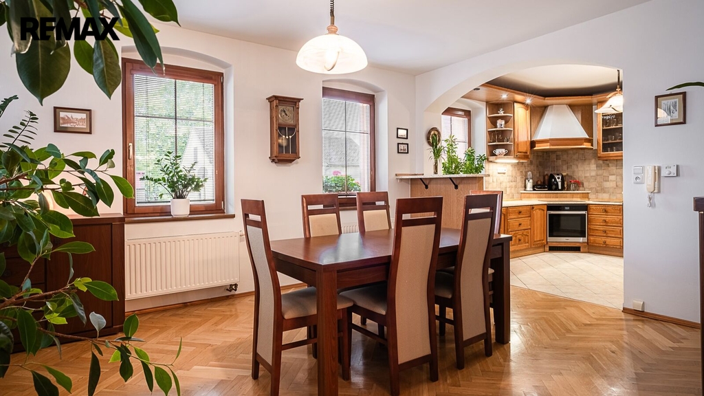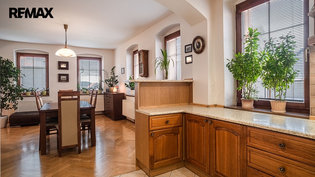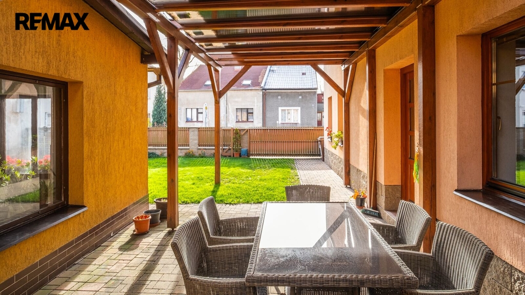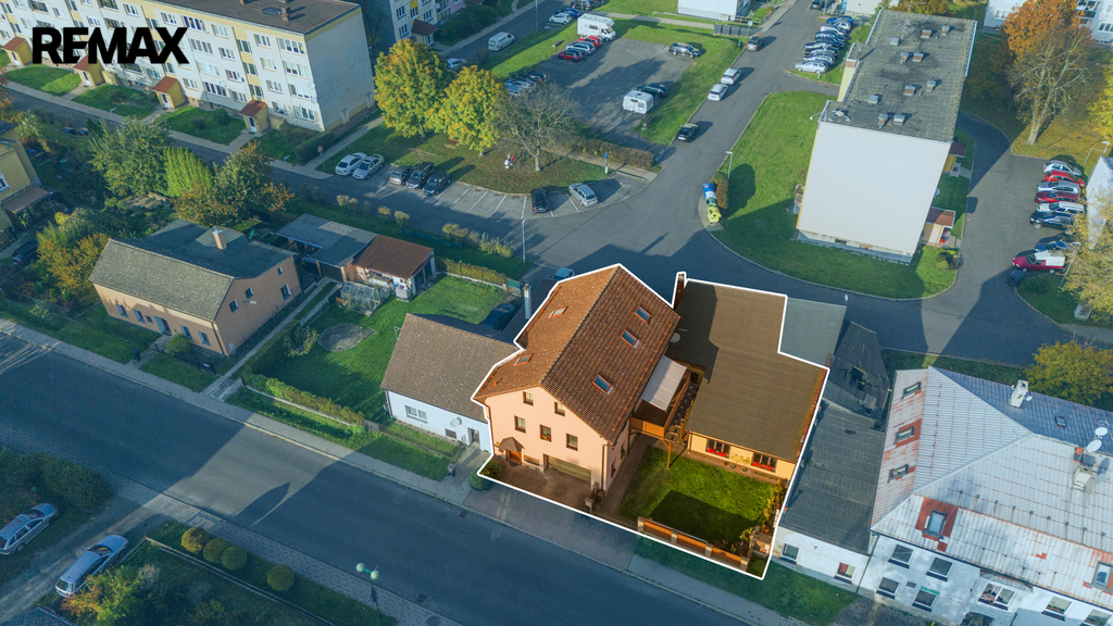 Dům prošel kompletní rekonstrukcí v roce 2002, má 2 podlaží + podkroví, je částečně podsklepený a napojený na kanalizaci, elektřinu, vodu a plyn. Půdorysné dispozice jsou patrné z přiložených vizualizací. Vytápění je zajištěno plynovým kotlem s rozvodem do radiátorů ve všech prostorech. Vstup do domu zajišťují vchody přímo z ulice Komenského, ze zahrady a zároveň je možný přístup z ulice Sídliště. Kromě garáží je dostatek parkovacích ploch před domem a zejména v jeho zadní části.