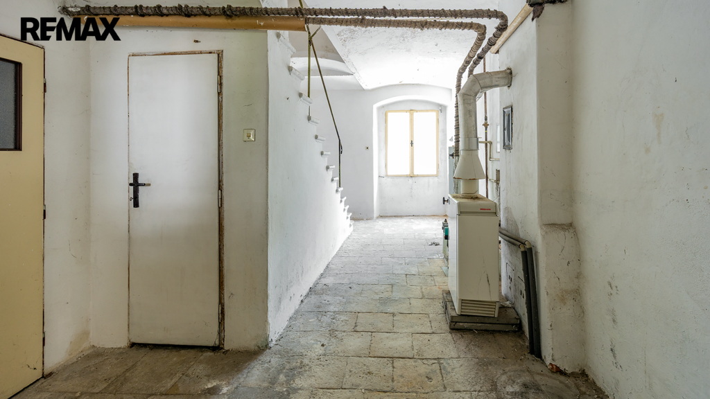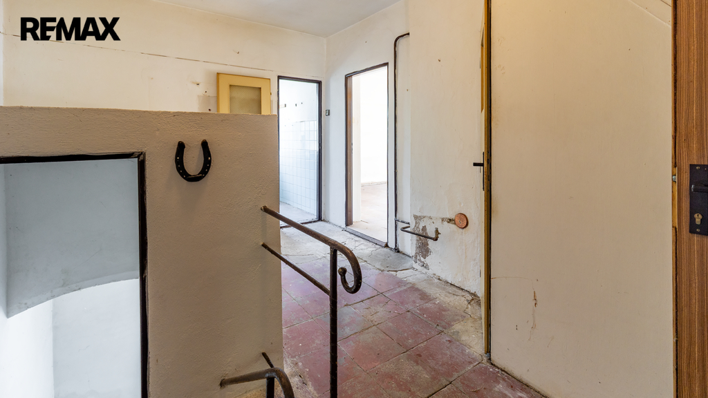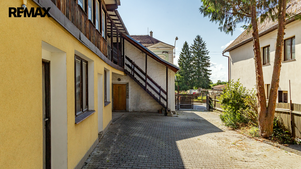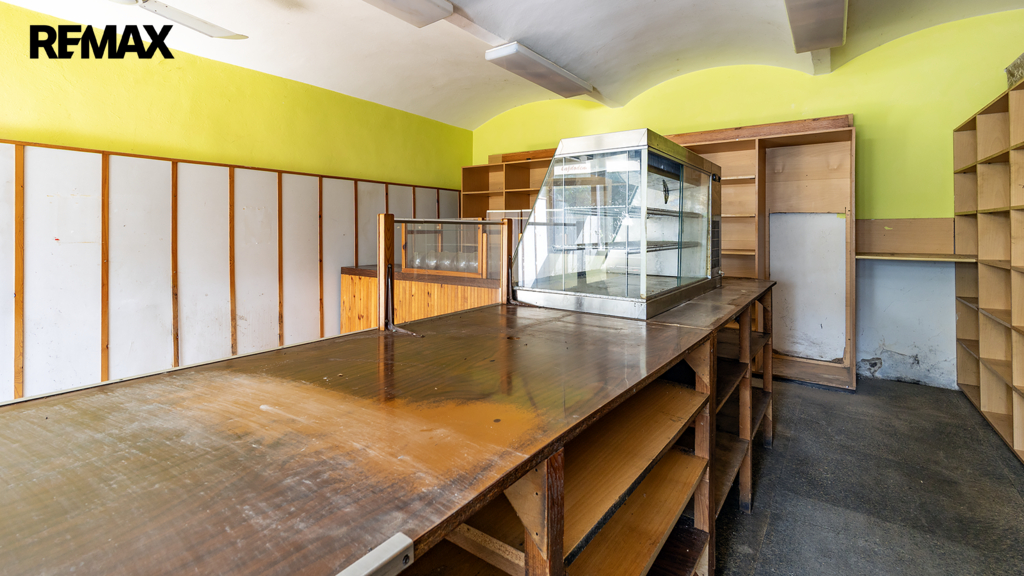 V hlavní části najdete bytovou jednotku 4+1 se dvěma koupelnami, garáží, komorami a dvěma místnostmi v podkroví. Pod touto částí se nachází sklep o velikosti cca 16 m² – ideální pro uskladnění potravin, vína nebo třeba sezonních věcí. Z prvního patra vede venkovní ochoz do velké společné haly, ze které je vstup do druhého bytu 3+1 v přístavbě. V přízemí přístavby se nachází prostor po bývalé prodejně potravin, se vstupem pro zákazníky ze dvora a samostatným zásobovacím zázemím a sklady ze zadní strany.