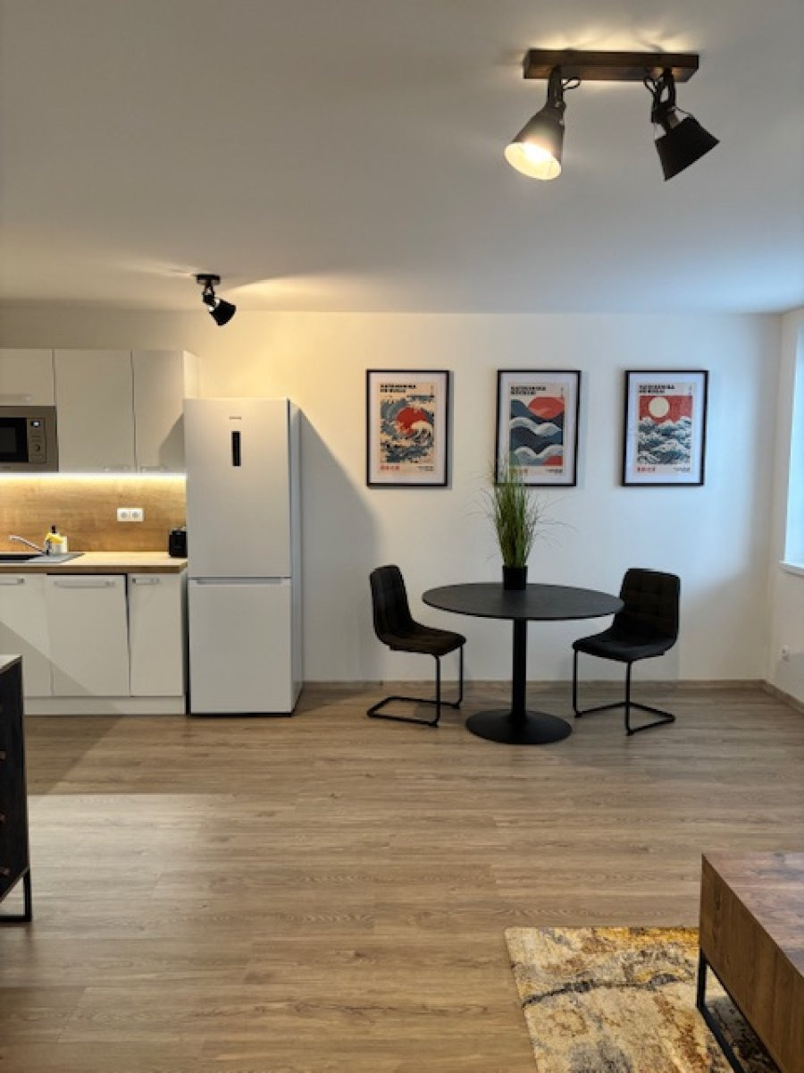 K dlouhodobému podnájmu nabízíme světlý byt o dispozici 2+kk na ulici 28. ˇříjna v Dašicích. Byt o celkové výměře 55 m² se nachází v 1. patře Nového bytového domu. Byt je pně vybaven ve vysokém standardu a umožňuje tak okamžité nastěhování bez dalších investic.