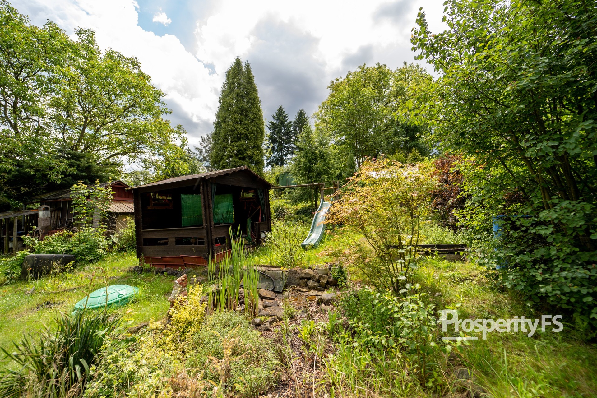 Chata o zastavěné ploše 17m2, do které není zavedena elektřina, která je v řešení, řád se sezónní vodou je přiveden na pozemek. Zahrada, která je mírně svažitá a v katastru vedena jako zahrada o výměře 561m2, zajištuje výborný předpoklad pro aktivní i relaxační odpočinek a dostatek prostoru pro bazén, trampolínu, pěstování ovoce i zeleniny