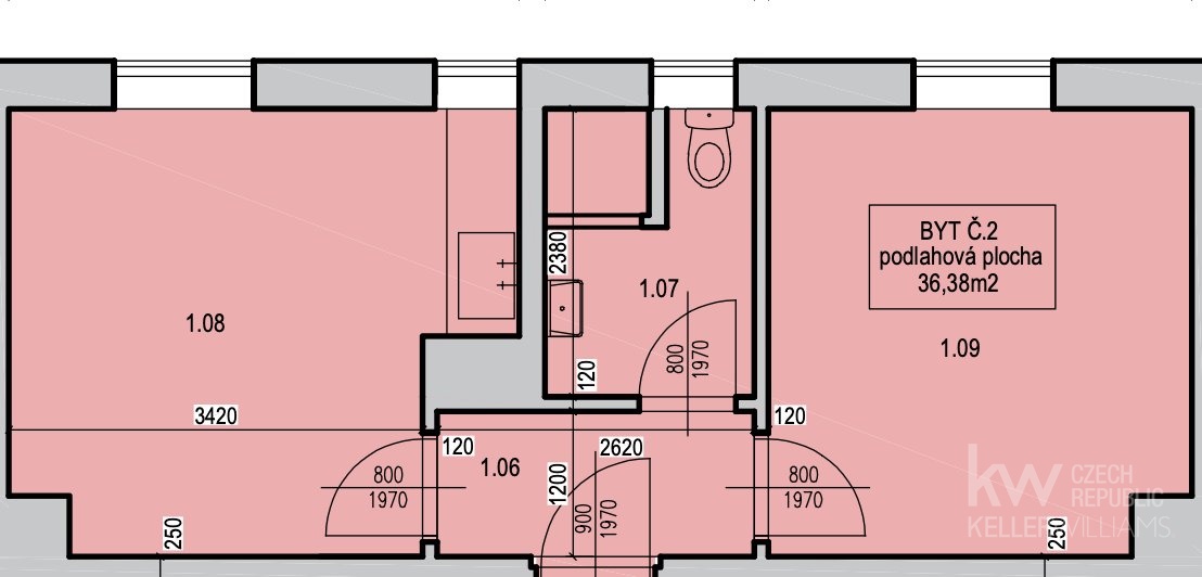 | Dispozice/podlahová plocha: | 2+kk/44 m² |