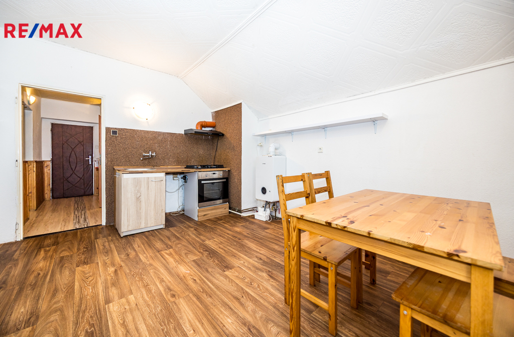 Vytápění zajišťuje plynový kotel umístěný v kuchyni, ohřev vody elektrickým bojlerem zavěšeným v koupelně.