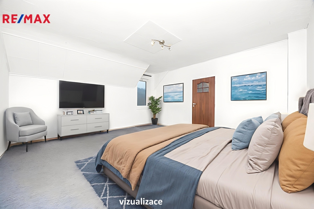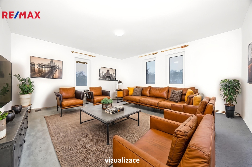 Některé fotografie v inzerci jsou takzvanou vizualizací, ukazují, jak by místnosti mohly vypadat po vybavení nábytkem a zabydlení nájemcem. Byt je nábytkem vybaven částečně.
