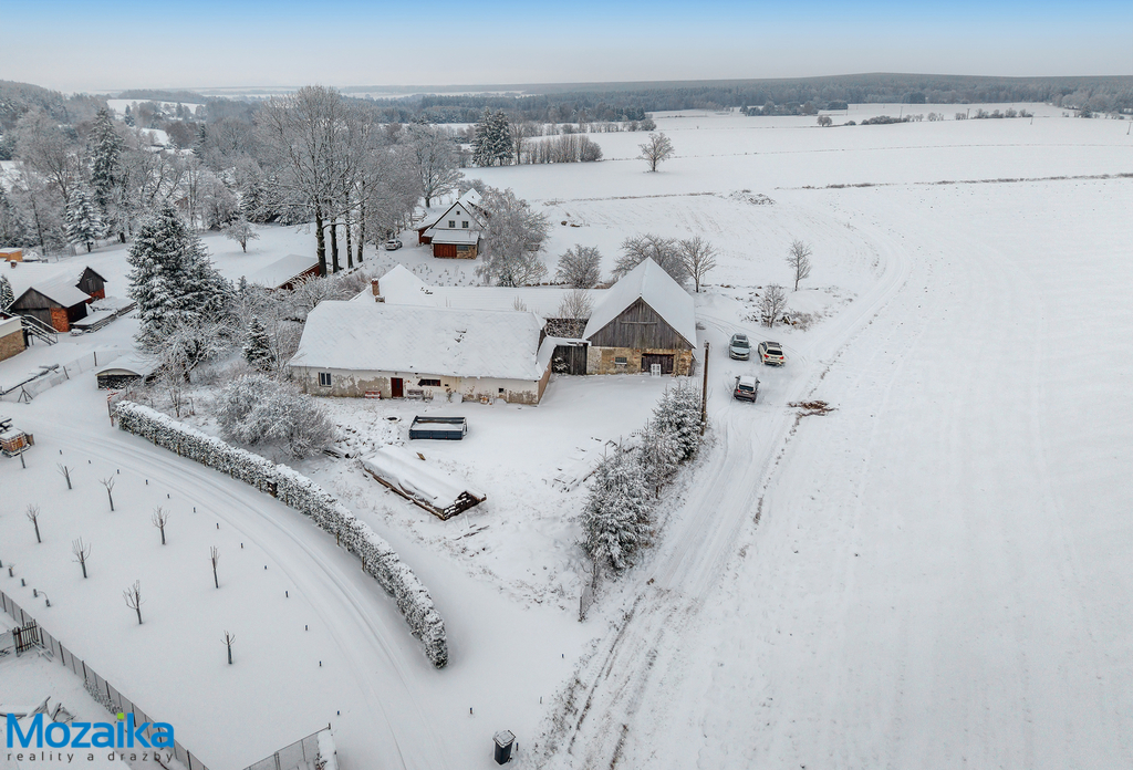 Celková výměra pozemků činí 86 333 metrů čtverečních, což vám poskytuje dostatek prostoru pro jakékoli využití. Dům má obytnou část 2+1 a navazující hospodářskou částí s chlévem a stodolou.