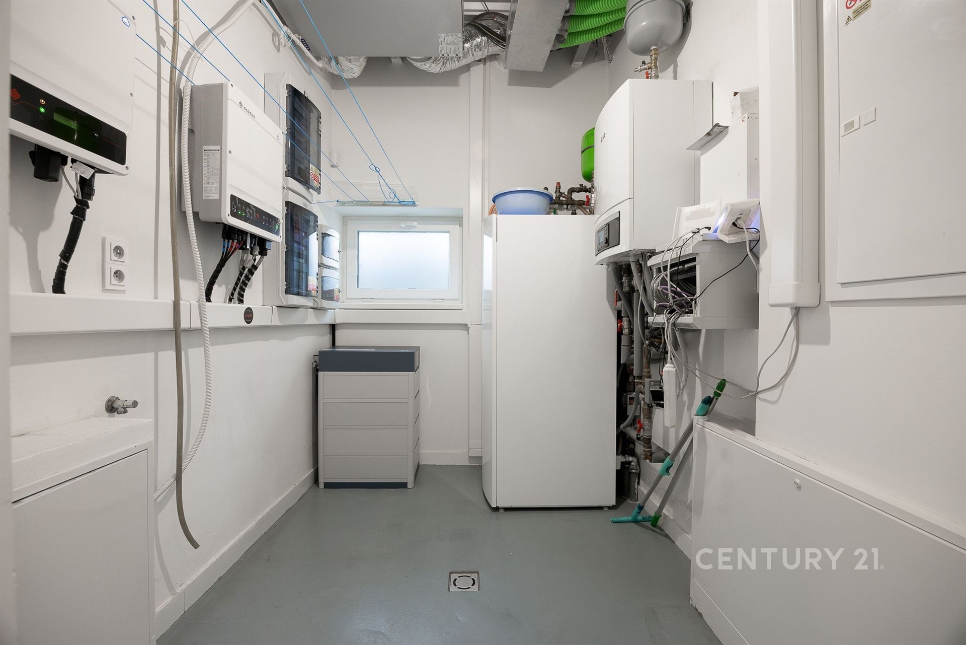 Stavba je realizována z cihelného systému HELUZ Family 50 2in1 s výbornou tepelnou izolací. O vytápění a ohřev vody se stará tepelné čerpadlo napojené na podlahové topení, nechybí rekuperace pro zdravé a úsporné větrání. Součástí je fotovoltaická elektrárna Solidsun o výkonu 19,8 kW s bateriovými úložišti Pylontech (14,2 kWh) a wallbox pro elektromobil. Plochá střecha je izolovaná EPS 150 S a hydroizolací DEKPLAN 76. Celý objekt chrání kamerový systém, alarm Paradox a je připraven na chytré řízení domácnosti.