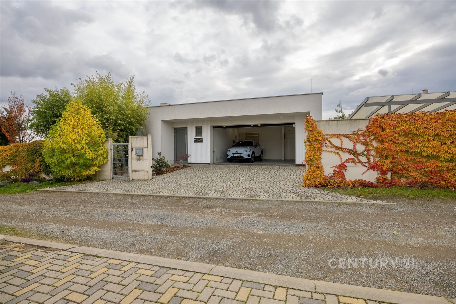 Prodej moderního rodinného domu 5+kk s terasou, garáží, saunou, bazénem a zahradním biotopem. K Moči
