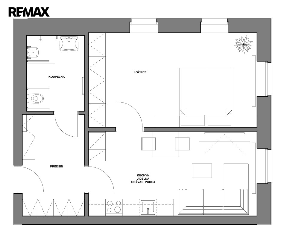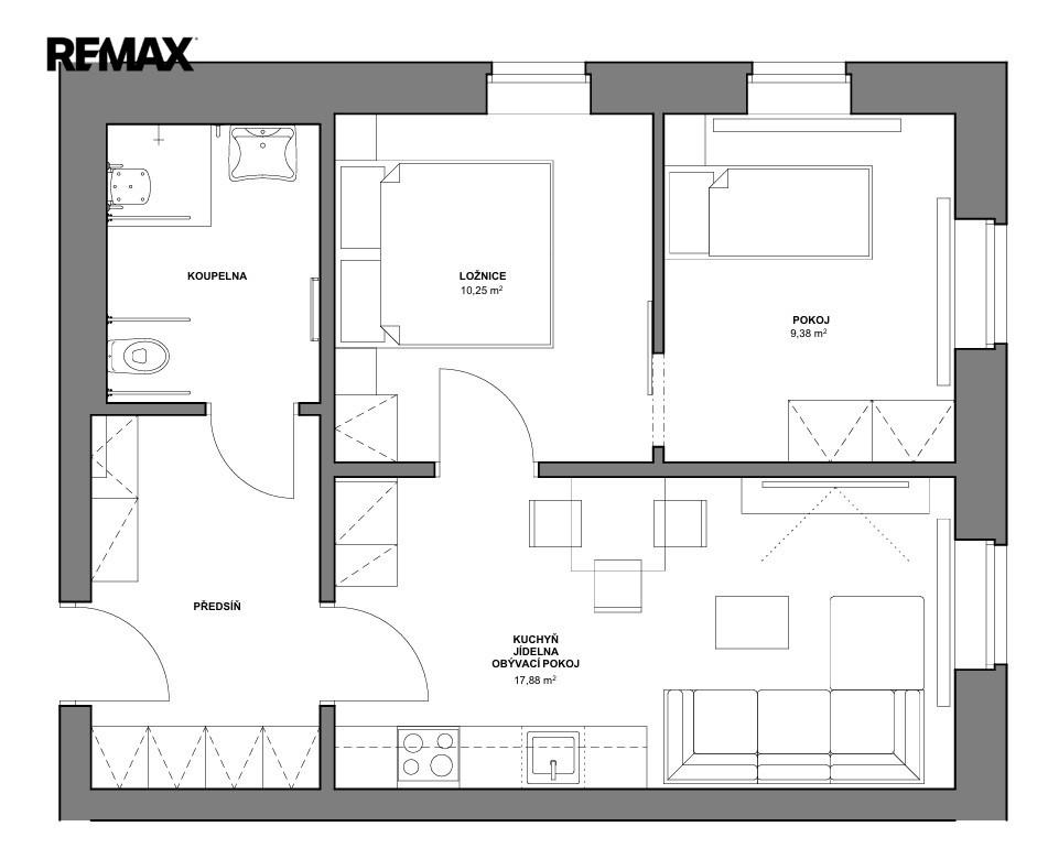 | Dispozice/podlahová plocha: | 2+kk/52 m² |