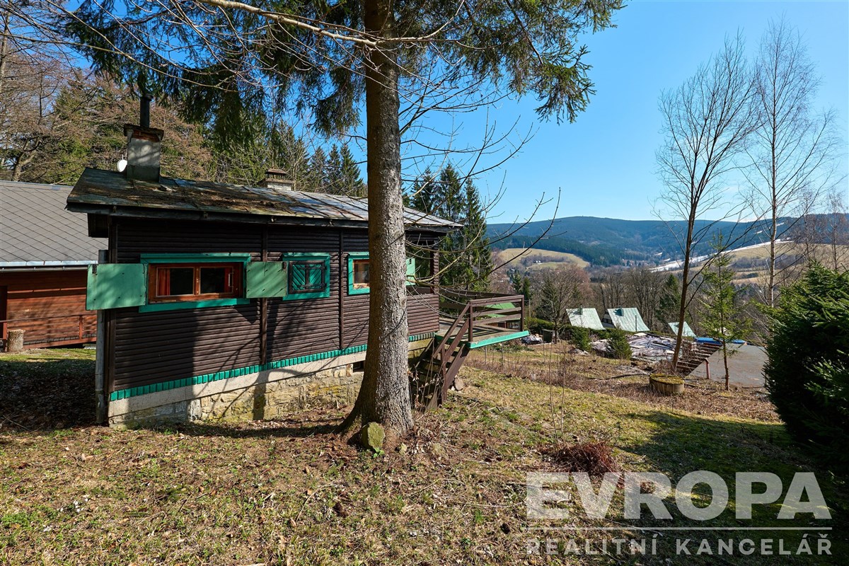 Součástí horního pozemku je stavba pro rodinou rekreaci s číslem evidenčním. Chalupa je obyvatelná s kuchyní i WC, ale spíše je určena k rekonstrukci. Z chalupy jsou krásné výhledy na celou obec Deštné v Orlických horách a okolní hory. Je to ideální místo pro odpočinek a relaxaci.