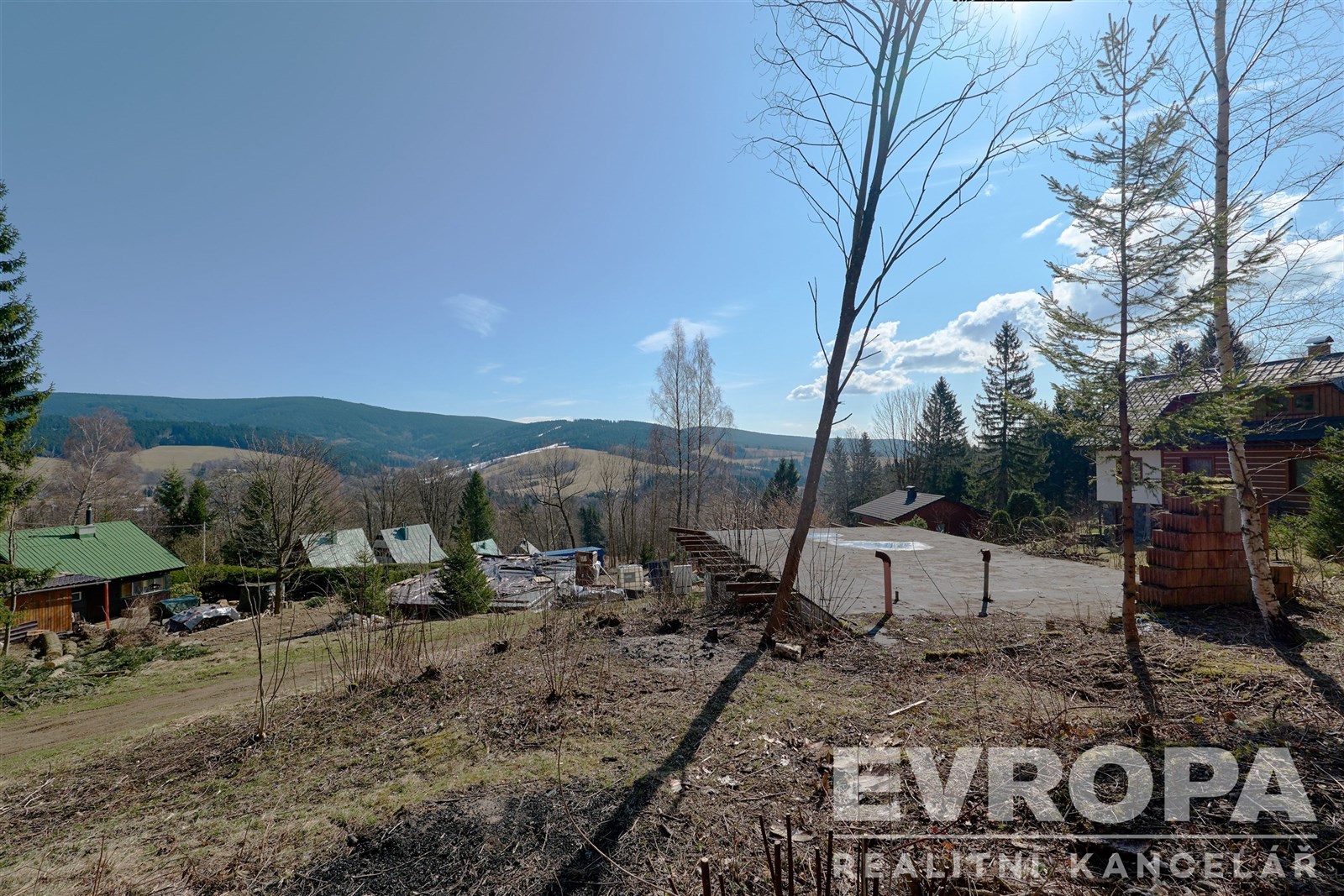Součástí spodního pozemku je torzo základové desky dříve nepovolené a nechválené stavby původního majitele. Nelze tedy použít na další výstavbu. Tento pozemek může nový majitel použít na výstavbu druhé chalupy, kterou může třeba pronajímat.