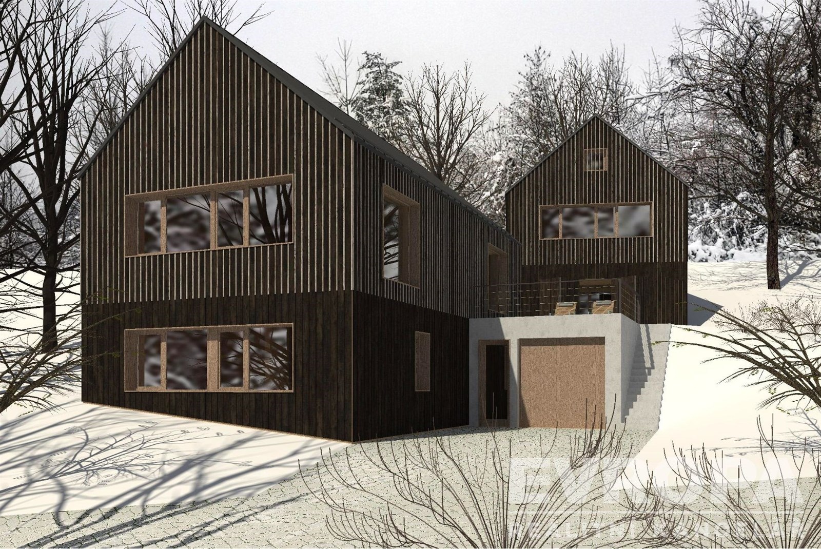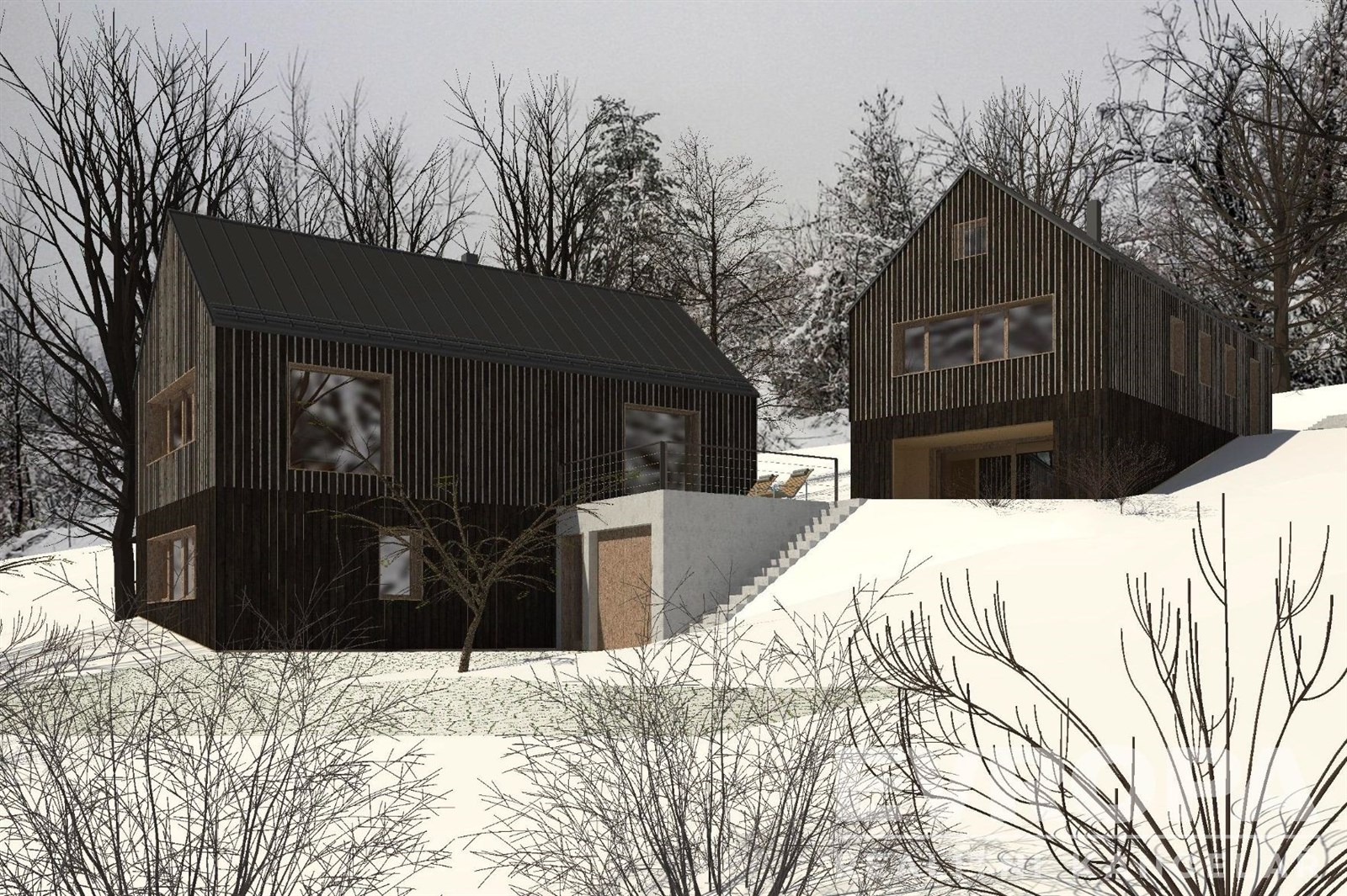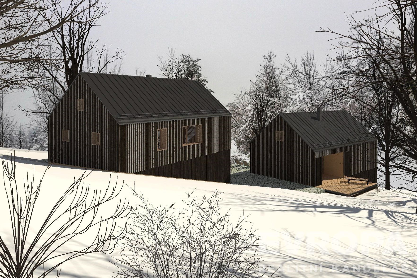 K pozemkům byla vytvořena nová architektonická studie renomované firmy Žárovka Architekti. Jedná se o studiu dvou na sebe navazujících chalup. Celá studie je navržena v souladu s Územním plánem obce Deštné v Orlických horách. Jedná se o plochu SR – plochy smíšené obytné – rekreační. Nové chalupy byly navrženy tak, aby co nejlépe zapadly do krajinného rázu. Chalupy mohou být užívány buď zcela samostatně nebo i společně a zároveň se doplňovat.