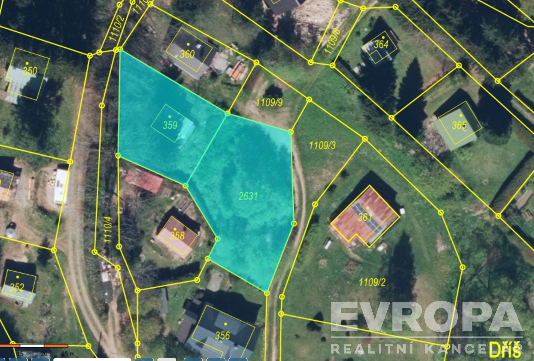 Horní pozemek o velikosti 385 m2