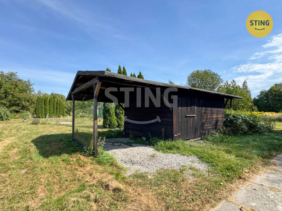 Okrasné a ovocné stromy, kůlna, prostor pro bazén