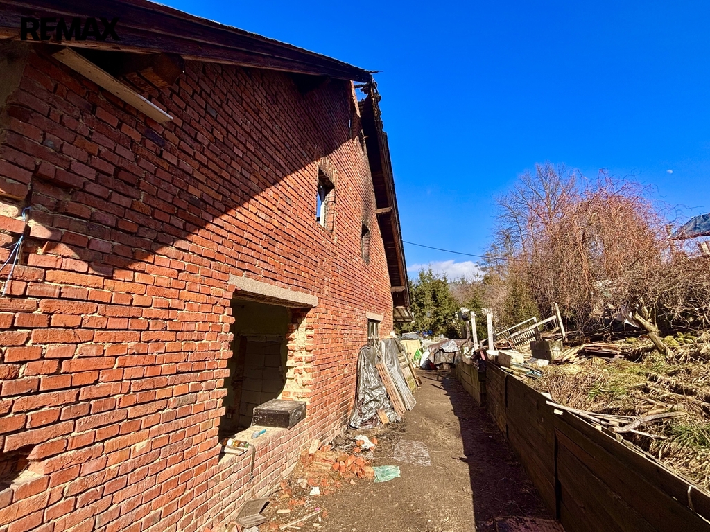 Torzo domu s kamennými základy a zdivem v kombinaci cilhy a kámen je dle statika zcela v pořádku. Budova je částečně podsklepena. Původní 3kk lze rozšířit na 4+1 a při rekonstrukci lze využít i půdní protor pro bydlení.