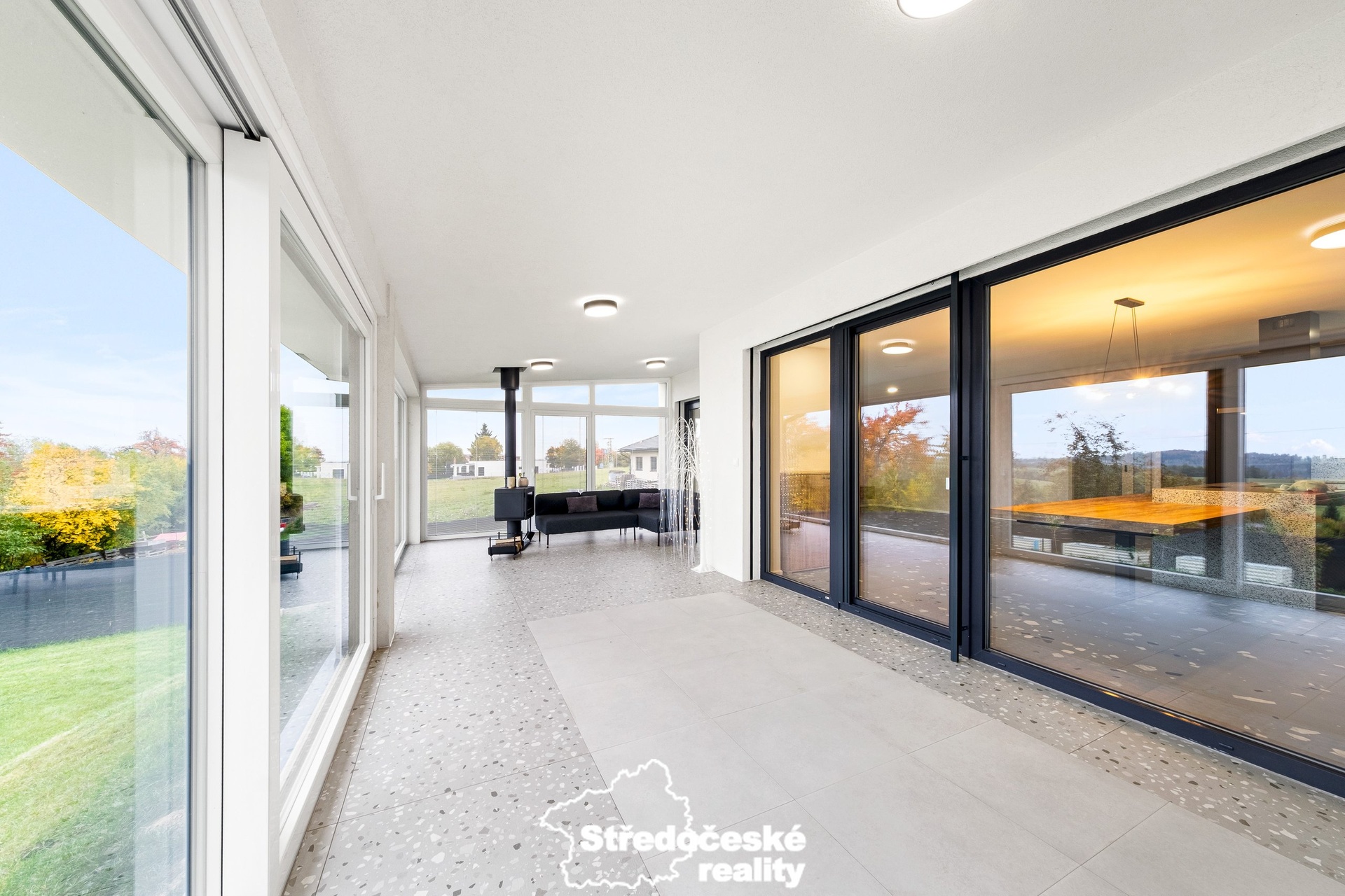 - terasa (33 m²) je zasklená, díky krbu umožňuje odpočinek v každém ročním období