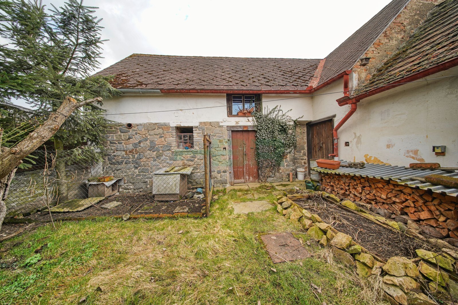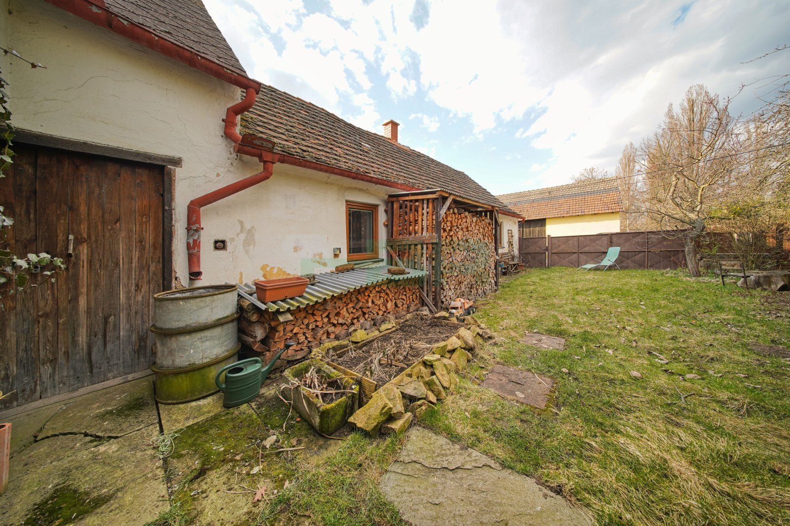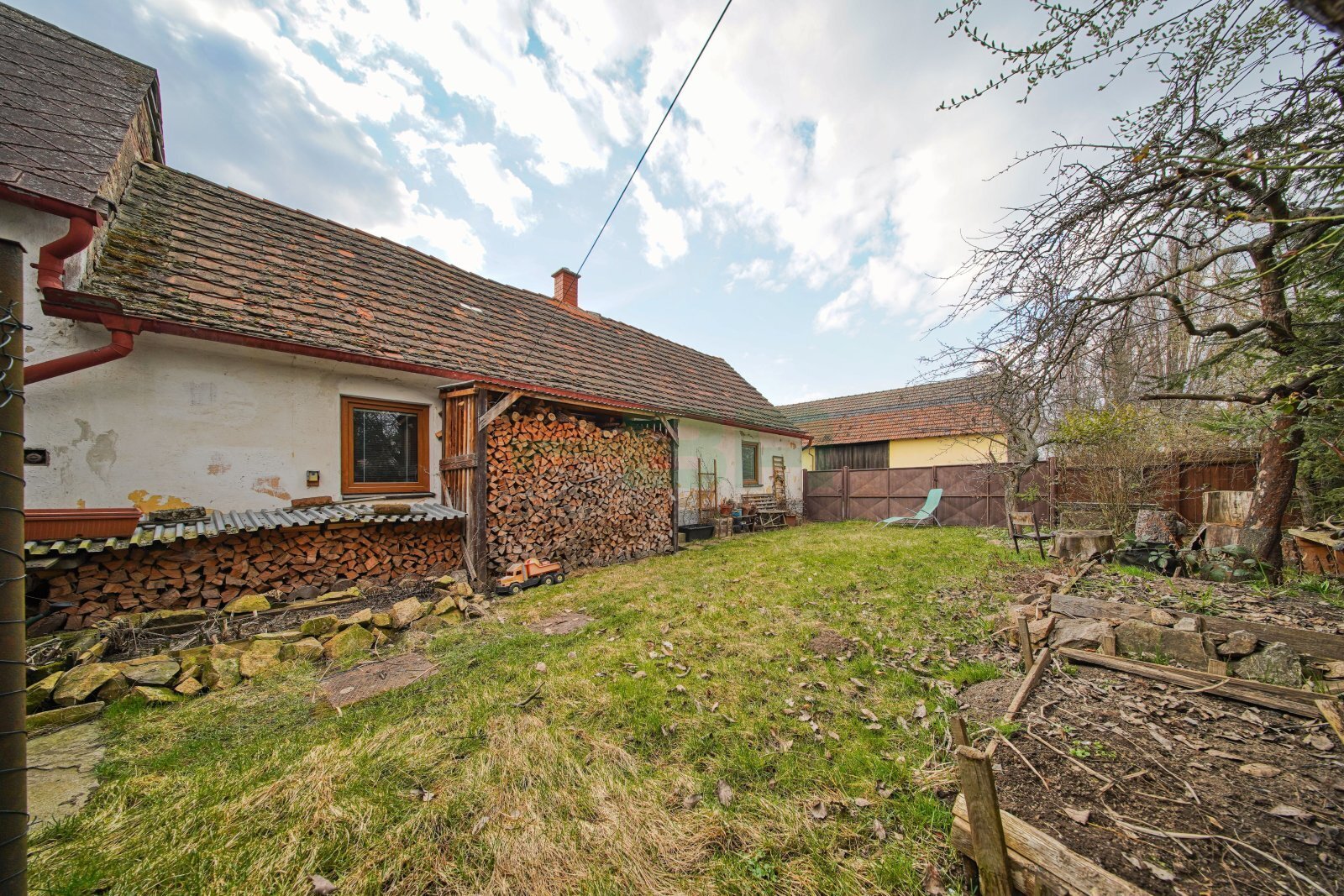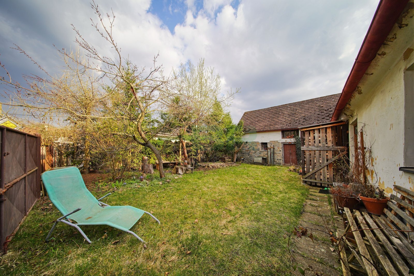 Rovinná a oplocená parcela (306 m2) s několika vzrostlými stromy. Zahrada 130 m2.