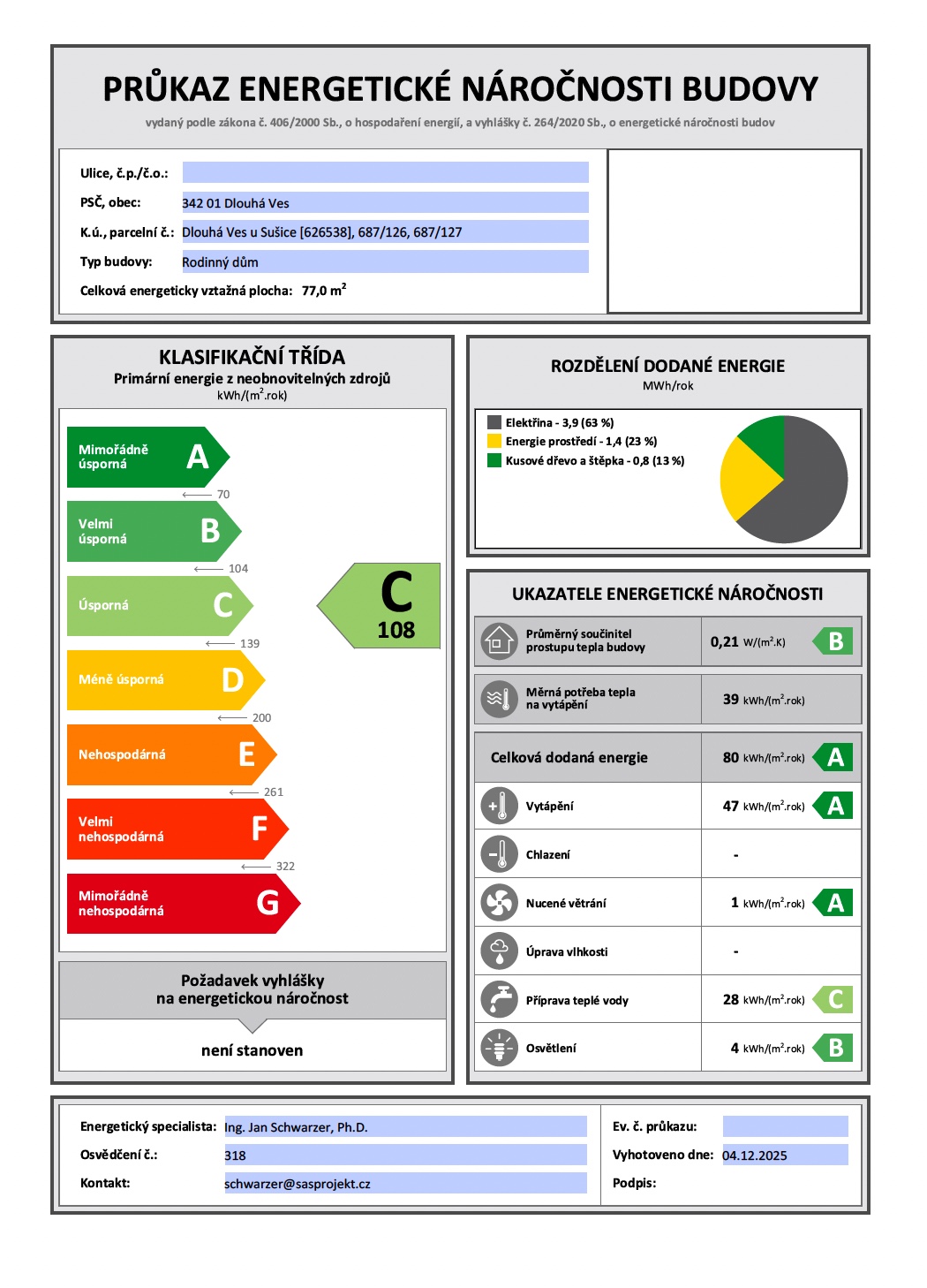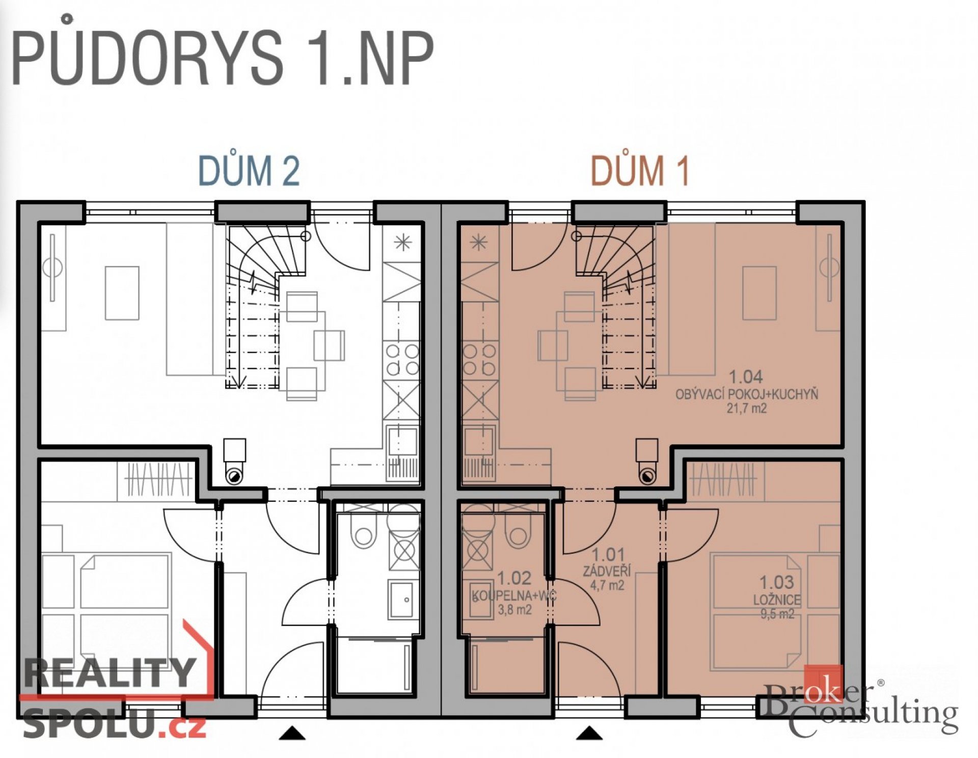 Prakticky řešený zděný dům nabízí v přízemí obývací pokoj s kuchyňským koutem, ložnici a koupelnu. V patře přístupném po dřevěném schodišti jsou pak další dvě místnosti. Je osazen izolačními trojskly, na podlahách najdeme dlažbu a vinyl. Samozřejmostí je zateplená fasáda i střecha, v přízemí je rekuperace. Koupelna se sprchovým koutem je velmi moderně navržena, je zde místo také pro pračku. Dům je vytápěn elektrickým podlahovým topením a je zde také komín k instalaci případných krbových kamen. Ohřev vody zajišťuje bojler. Dům je vedle elektřiny napojen na veřejný vodovod a kanalizaci, k dispozici je též datová přípojka. Zájemci si aktuálně mohou vybrat z prvních dvou domů, jejichž kolaudace proběhne v červenci 2026.