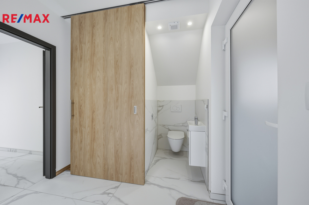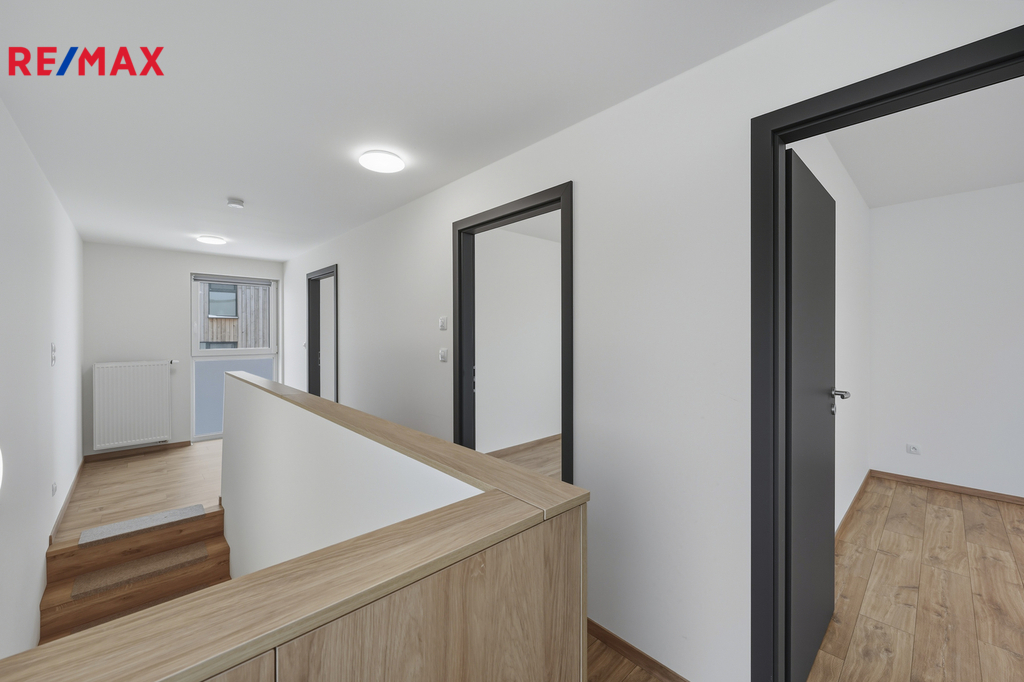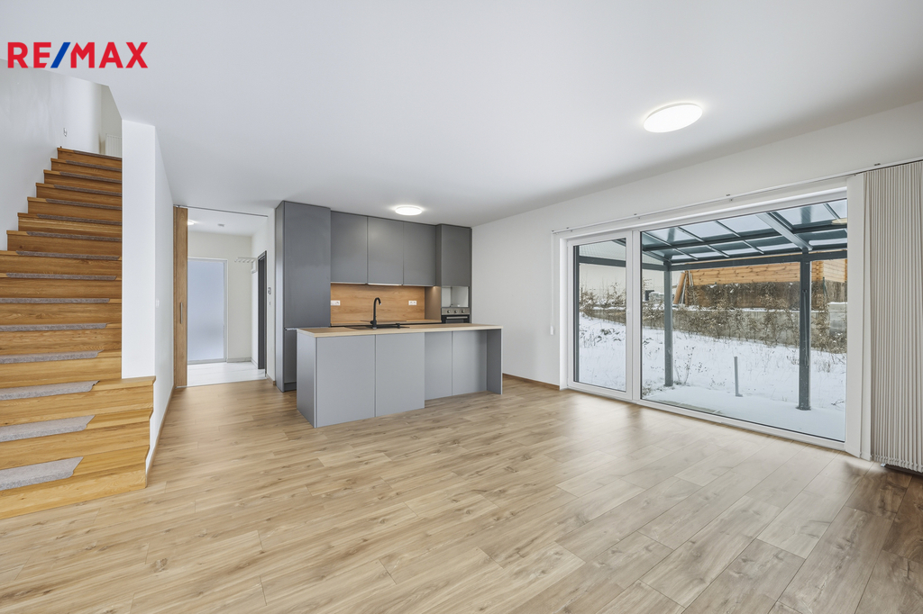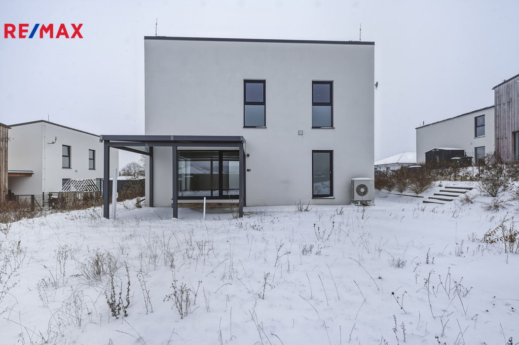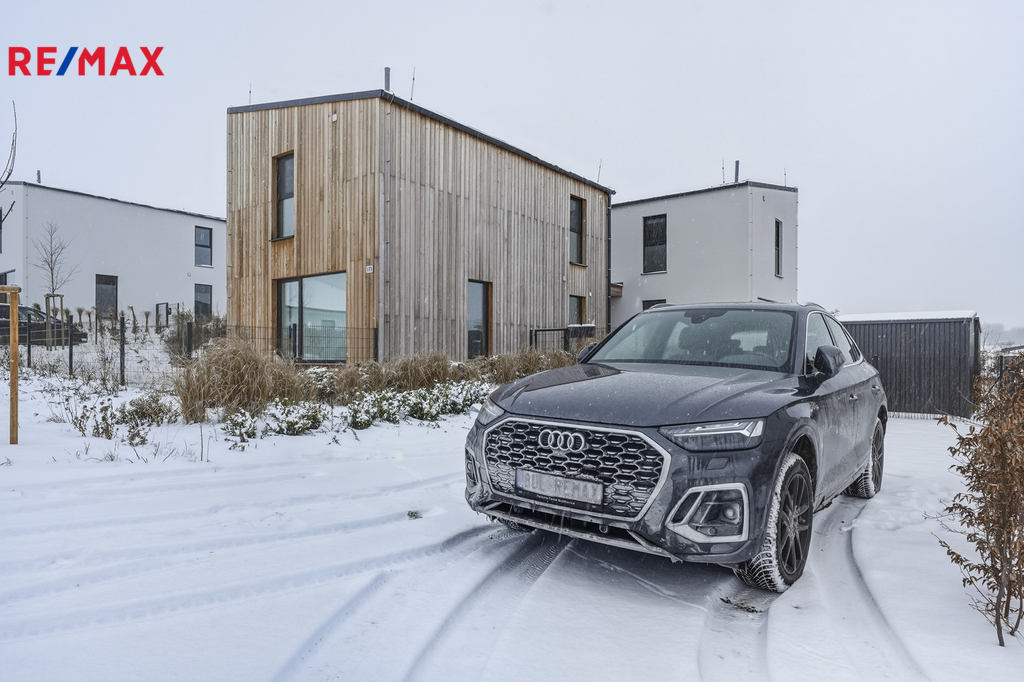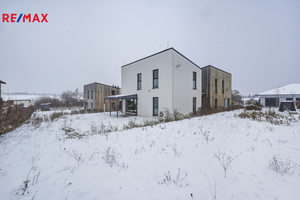 Tato dřevostavba nabízí užitnou plochu 94 m² a velmi praktické dispoziční řešení. V přízemí se nachází zádveří, samostatná toaleta, technická místnost a prostorný obývací pokoj propojený s kuchyňským a jídelním koutem, odkud je přímý vstup na krytou terasu a do zahrady. Kuchyňská linka včetně vestavných spotřebičů je již součástí domu. V patře jsou tři samostatné pokoje a koupelna s vanou a toaletou, což poskytuje dostatek prostoru pro komfortní rodinné bydlení. Kolaudace nemovitosti proběhla v sprnu 2023.