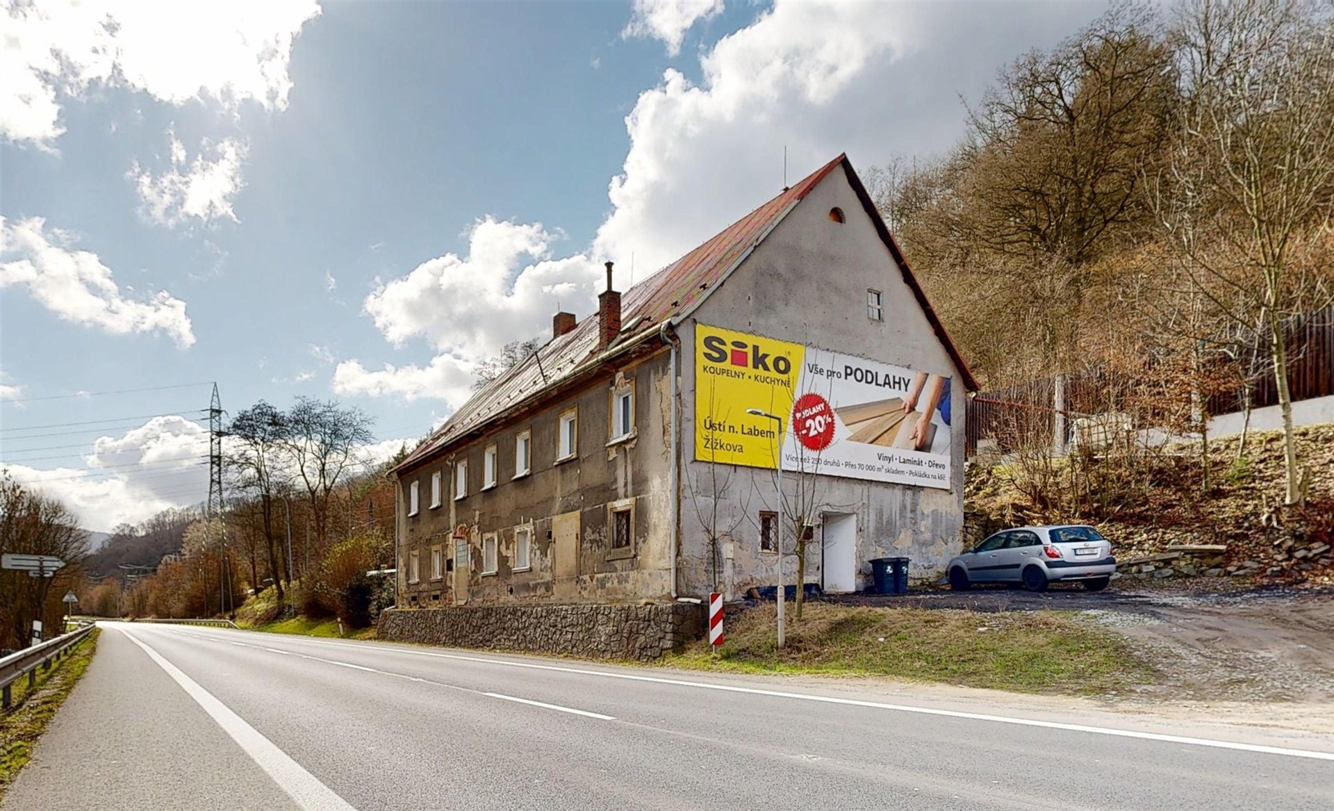 Původní stavba bytelného kamenného domu zde stojí už několik století, postavena je ze smíšeného zdiva, v základech s převahou kamene. Současná podoba zejména interiéru je prací současného majitele, který dům koupil v roce 2011. Dům je podsklepený částečně, plocha sklepů je cca 43 m2, další místnosti, sloužící např. jako úložné prostory a dílny se nachází v přízemí domu. Tam najdeme také byt s dispozici 1+1 a kompletním příslušenstvím, který obývá nejstarší člen domácnosti. Přízemí má bezbariérový vstup. V zadní části přízemí najdeme kotelnu a garáž, sloužící jako dílna. A východ do zahrady. V patře je velký byt 5+1 (druhý největší pokoj není dokončený, takže k okamžitému užívání lze využít 4+1 s příslušenstvím, zejména skutečně velkorysou koupelnou. I z tohoto patra lze vyjít přímo do zahrady. Nad velkým bytem se nachází velký nevyužitý půdní prostor. Okna v celém domě jsou plastová, kvalitní, zaručující naprosté minimum hluku i tepelných ztrát. Dům je napojen na vodovod a přívod el. proudu, odpad sveden do žumpy. Vytápění je zajištěno ústředním topením a kotlem na tuhá paliva, ohřev vody bojlerem. Velký byt v patře disponuje i krbovými kamny. Střecha je plechová, v dobrém stavu. Bohužel dům nemá novou fasádu ta by celkový dojem výrazně zlepšila. Za domem je velký pozemek zahrada, celkem 1907 m2, která umožňuje mimo jiné i parkování většího množství aut včetně dodávek a má samostatný vjezd z hlavní silnice. Na dome je umístěna reklama, jejíž výnos majiteli v podstatě uhradí náklady na vytápění domu. Díky vyvýšené poloze domu je velmi pěkný výhled na Labe a krajinu na druhé straně. Ideální nemovitost pro větší rodinu a případně provozování menší živnosti. Bližší informace Vám ráda podám a sjednám prohlídku domu. Samozřejmostí je pomoc s financováním koupě.