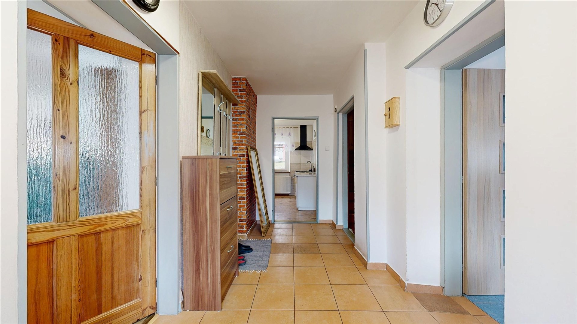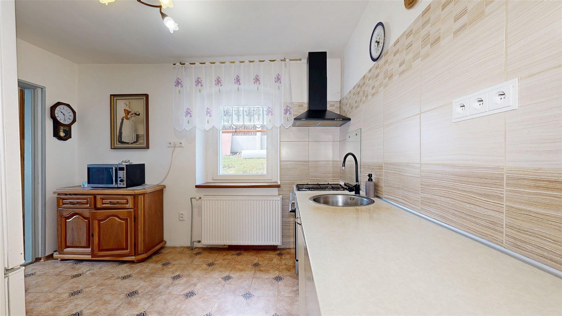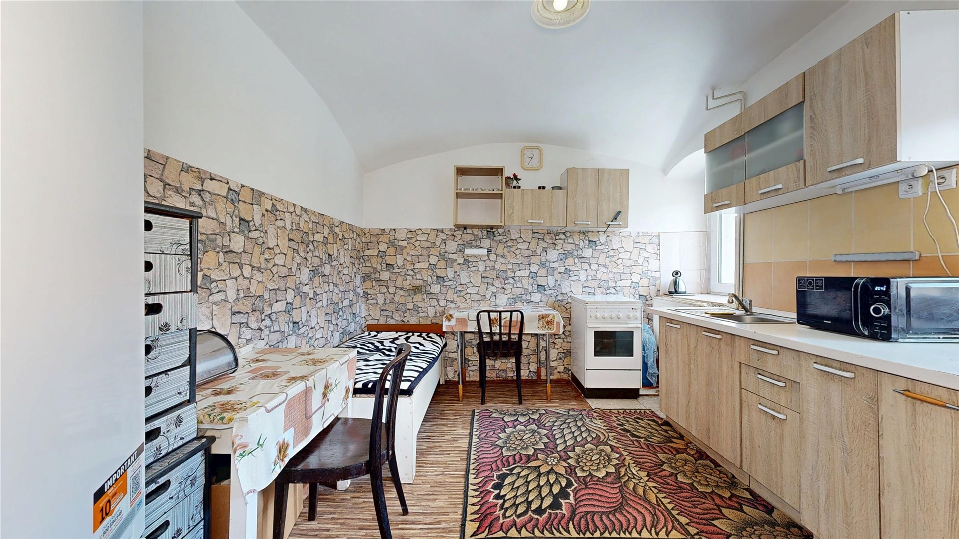 Původní stavba bytelného kamenného domu zde stojí už několik století, postavena je ze smíšeného zdiva, v základech s převahou kamene. Současná podoba zejména interiéru je prací současného majitele, který dům koupil v roce 2011. Dům je podsklepený částečně, plocha sklepů je cca 43 m2, další místnosti, sloužící např. jako úložné prostory a dílny se nachází v přízemí domu. Tam najdeme také byt s dispozici 1+1 a kompletním příslušenstvím, který užívá nejstarší člen domácnosti. Přízemí má bezbariérový vstup. V zadní části přízemí najdeme kotelnu a garáž, sloužící jako dílna. A východ do zahrady. V patře je velký byt 5+1 (druhý největší pokoj není dokončený, takže k okamžitému užívání lze využít 4+1 s příslušenstvím, zejména skutečně velkorysou koupelnou. I z tohoto patra lze vyjít přímo do zahrady. Nad velkým bytem se nachází velký nevyužitý půdní prostor. Okna v celém domě jsou plastová, kvalitní, zaručující naprosté minimum hluku i tepelných ztrát. Dům je napojen na vodovod a přívod el. proudu, odpad sveden do žumpy. Vytápění je zajištěno ústředním topením a kotlem na tuhá paliva, ohřev vody bojlerem. Velký byt v patře disponuje i krbovými kamny. Střecha je plechová, v dobrém stavu. Bohužel dům nemá novou fasádu ta by celkový dojem výrazně zlepšila. Za domem je velký pozemek zahrada, celkem 1907 m2, která umožňuje mimo jiné i parkování většího množství aut včetně dodávek a má samostatný vjezd z hlavní silnice. Na dome je umístěna reklama, jejíž výnos majiteli v podstatě uhradí náklady na vytápění domu. Díky vyvýšené poloze domu je velmi pěkný výhled na Labe a krajinu na druhé straně. Ideální nemovitost pro větší rodinu a případně provozování menší živnosti. Bližší informace Vám ráda podám a sjednám prohlídku domu. Samozřejmostí je pomoc s financováním koupě.