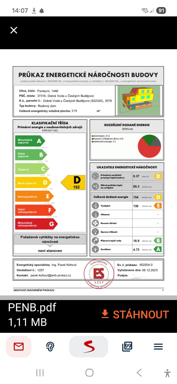 - Energetický ukazatel podle vyhlášky: č. 78/2013 Sb.