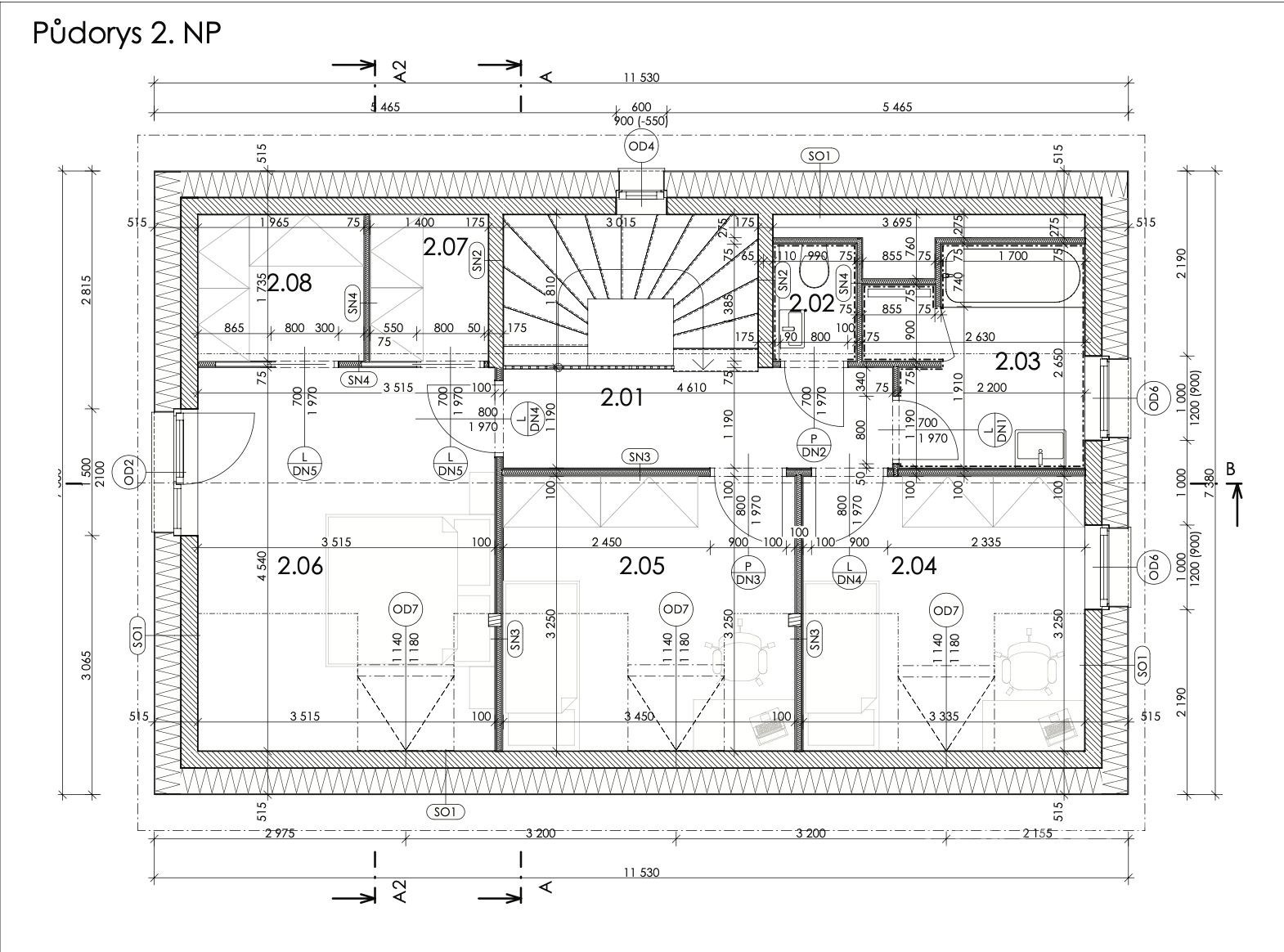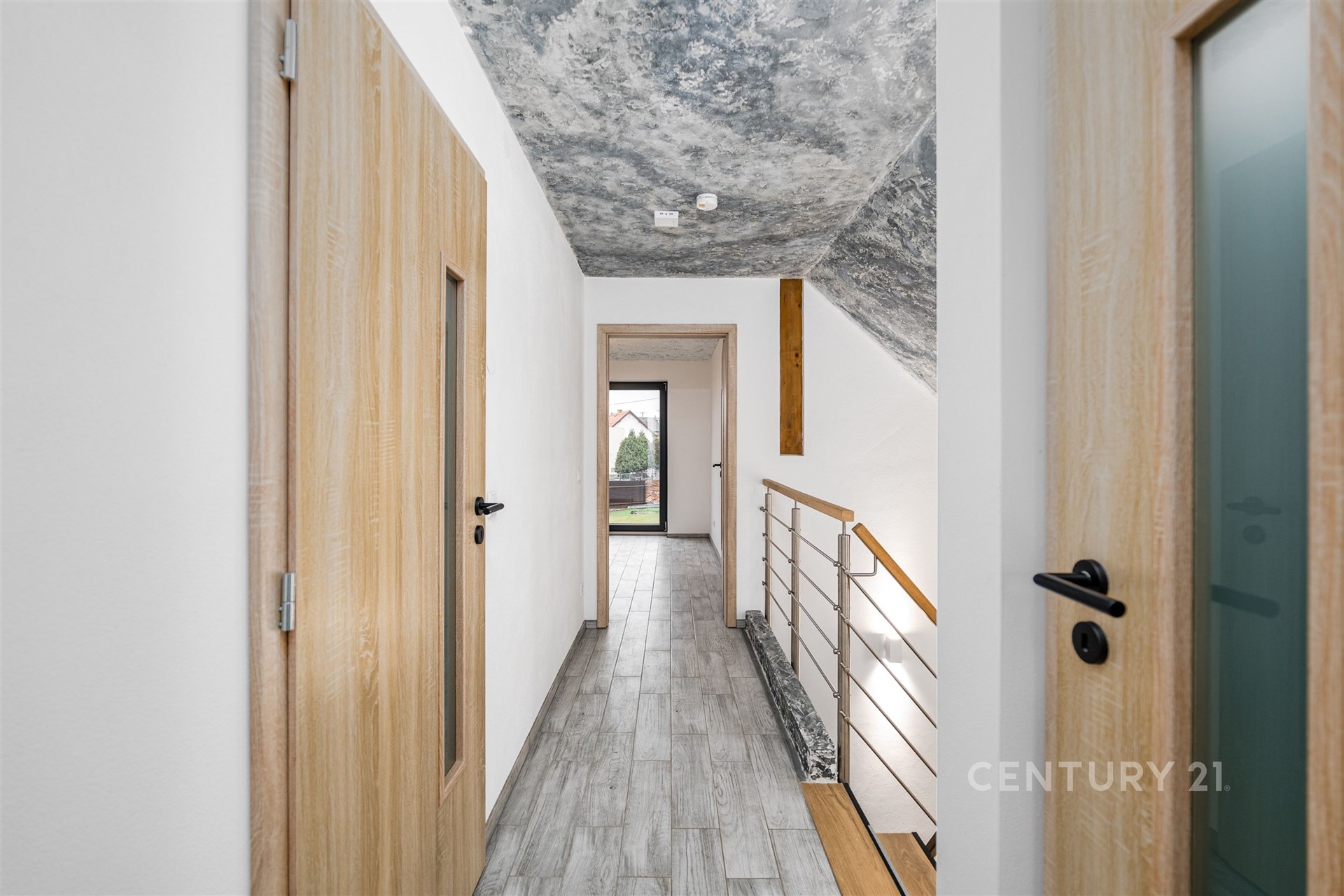 Dům je skvěle dispozičně řešen, v přízemí se nachází jeden samostatný pokoj, technické zázemí, koupelna a velmi vzdušný prostor obývací a jídelní části s kuchyňským koutem. Horní patro je členěno na dva samostatné pokoje, z nichž jeden má vlastní samostatnou šatnu. Dětský pokoj je uzpůsobený pro rozdělení na dva menší pokoje. Koupelnu s vanou a se sprchovým koutem a samostatnou toaletu.
