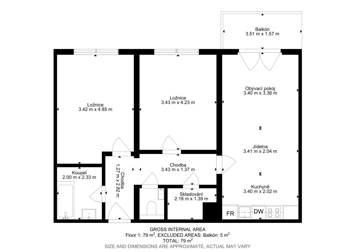 - Dispozice bytu: 3+kk