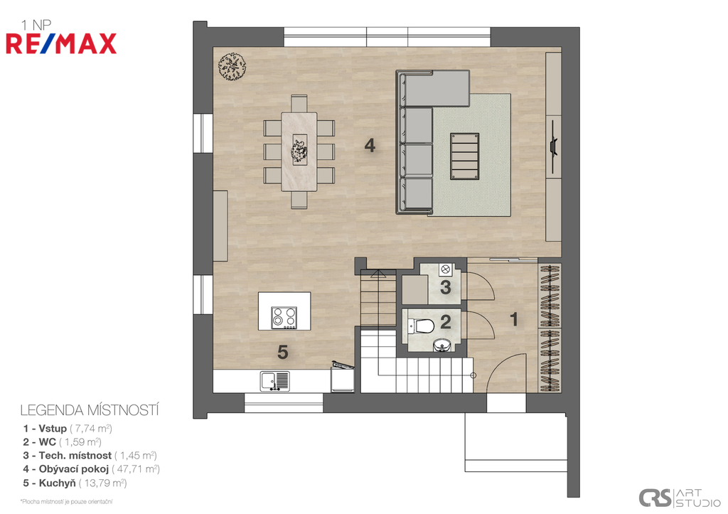Užitná plocha domu činí 141 m2, přičemž pochozí půda poskytuje dalších 20 m2 prostoru. K dispozici je také technická místnost, spižírna a samostatná šatna. Tento dům byl zkolaudován v roce 2020 a je ve velmi dobrém stavu.