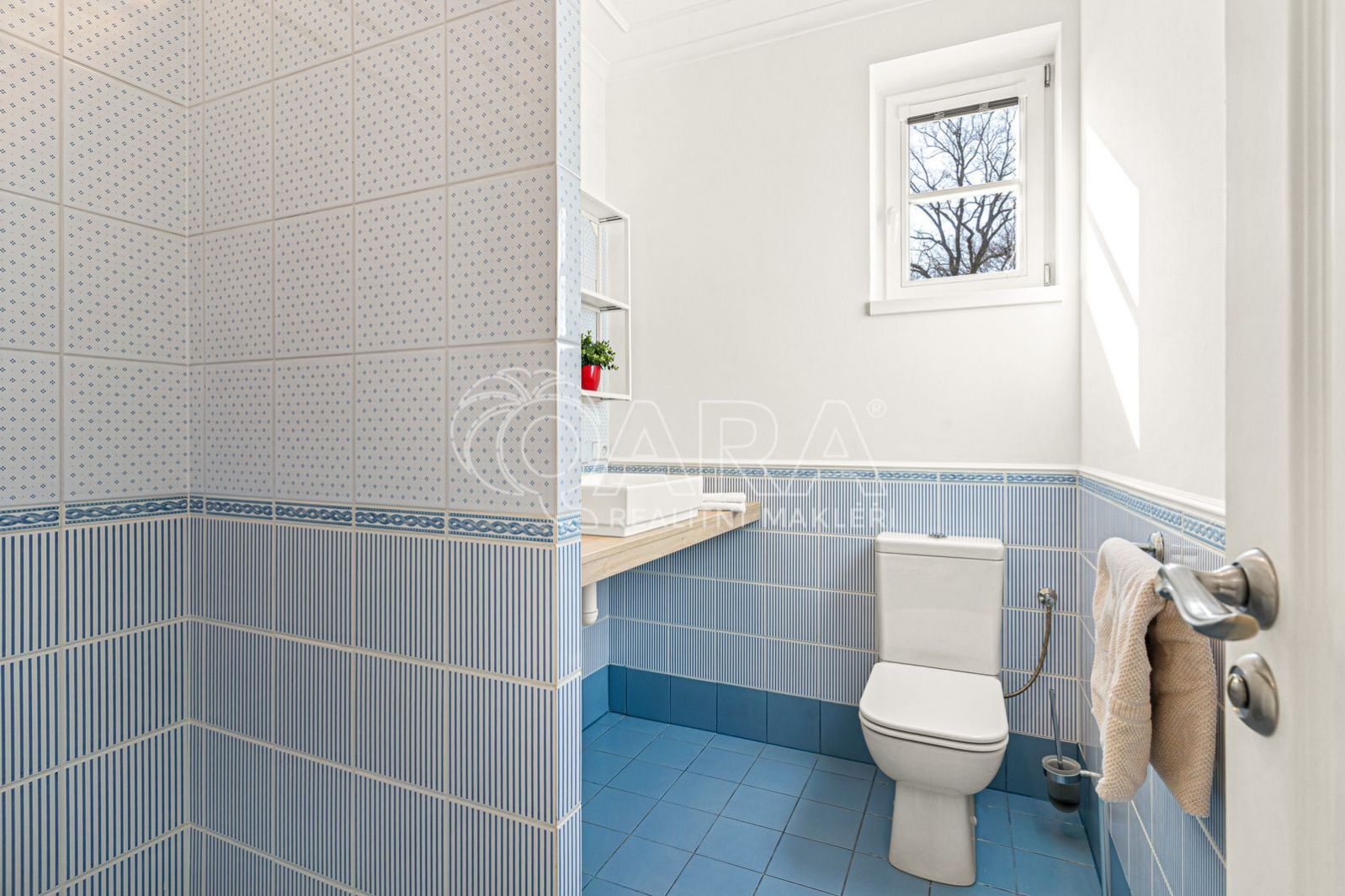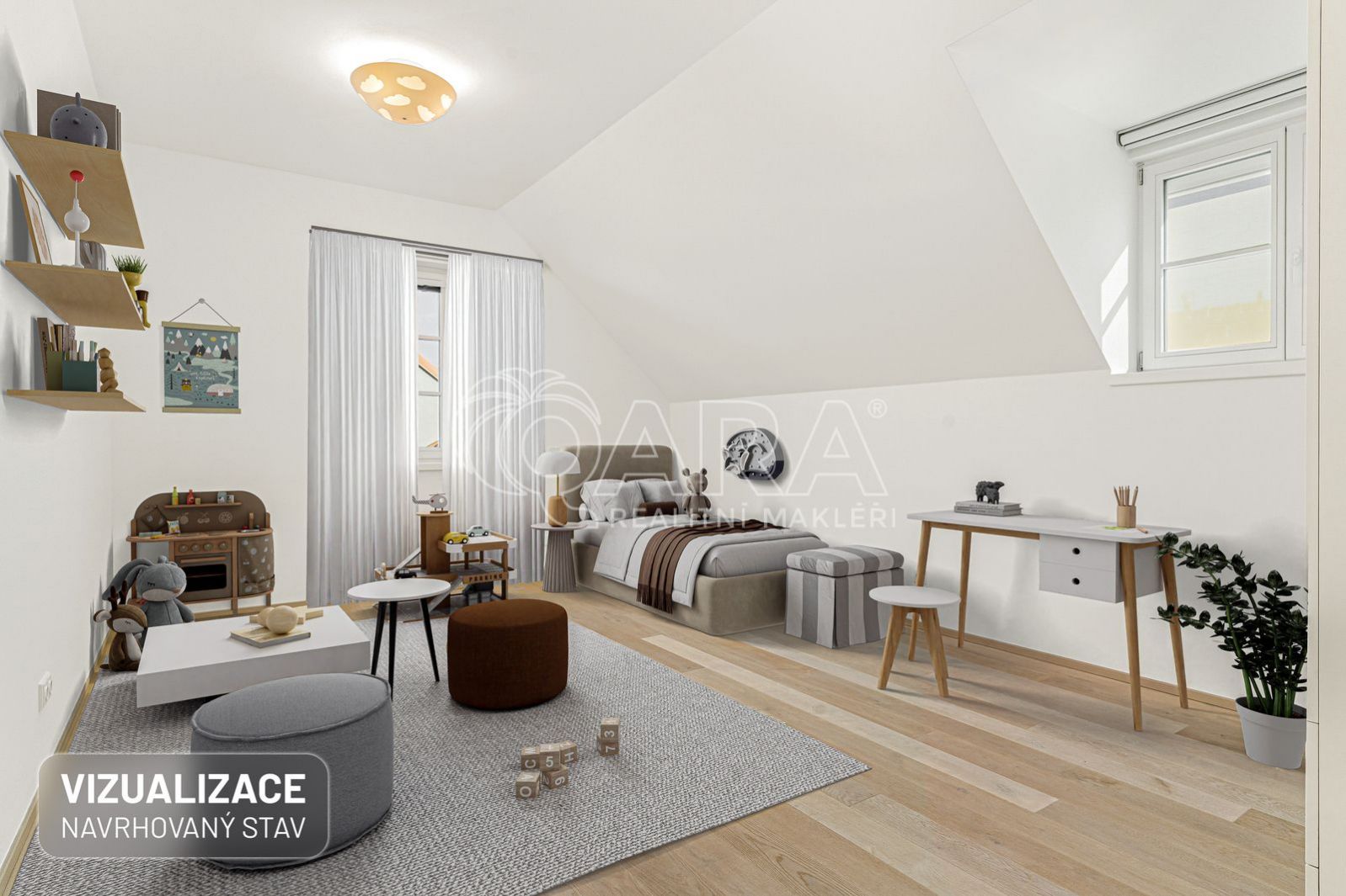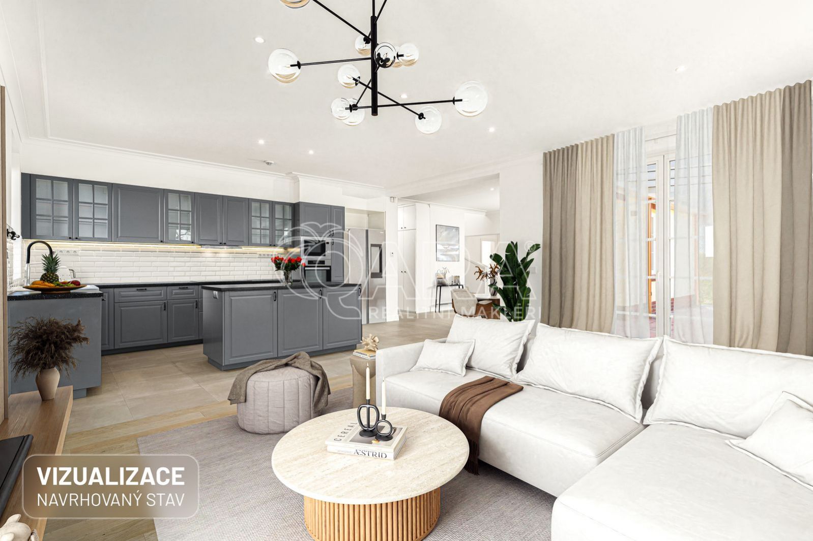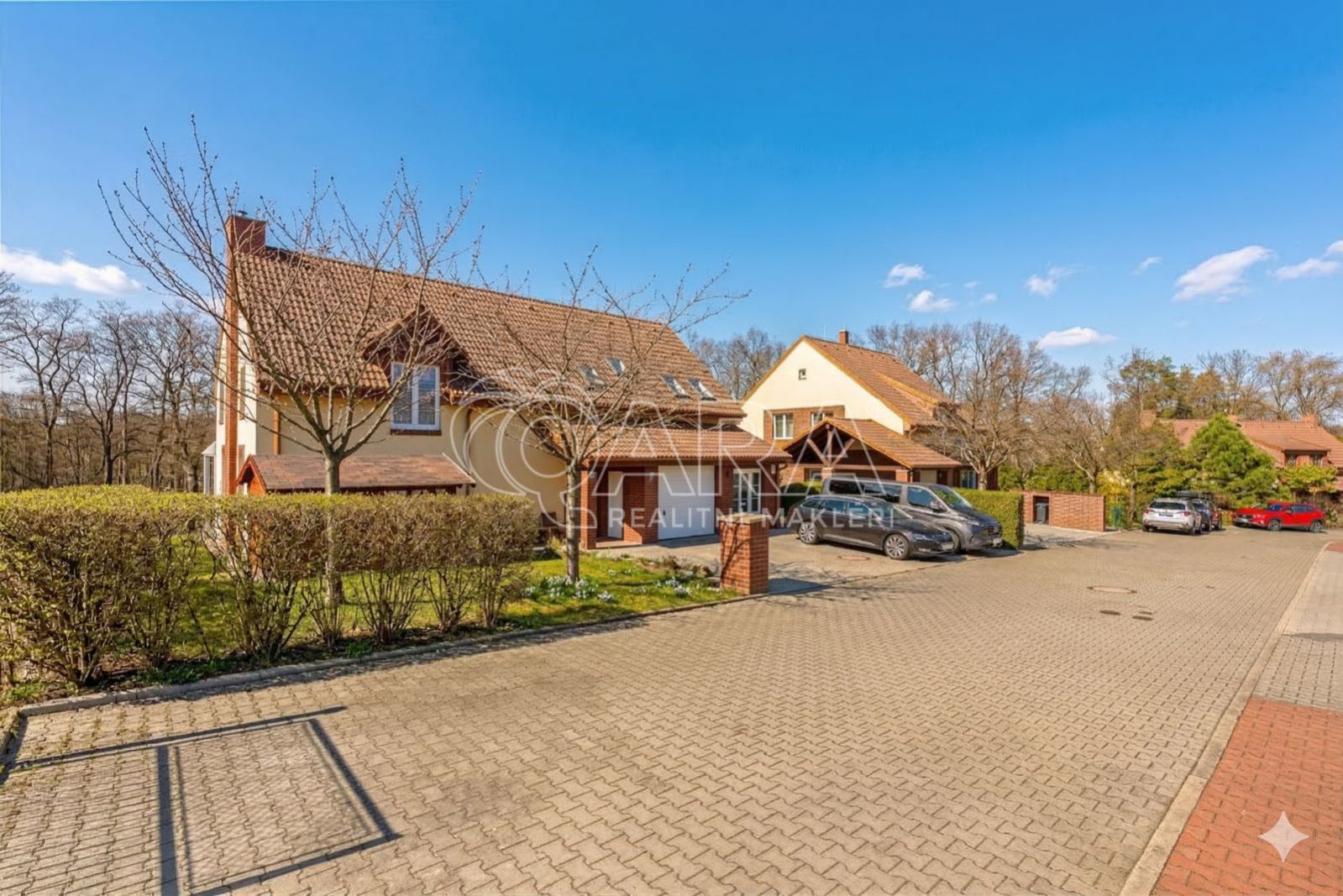 Dispozice domu nabízí několik pokojů, tři koupelny, šatnu i praktické technické zázemí. Součástí je také garáž a samostatný prostor vhodný například pro pracovnu nebo podnikání.
