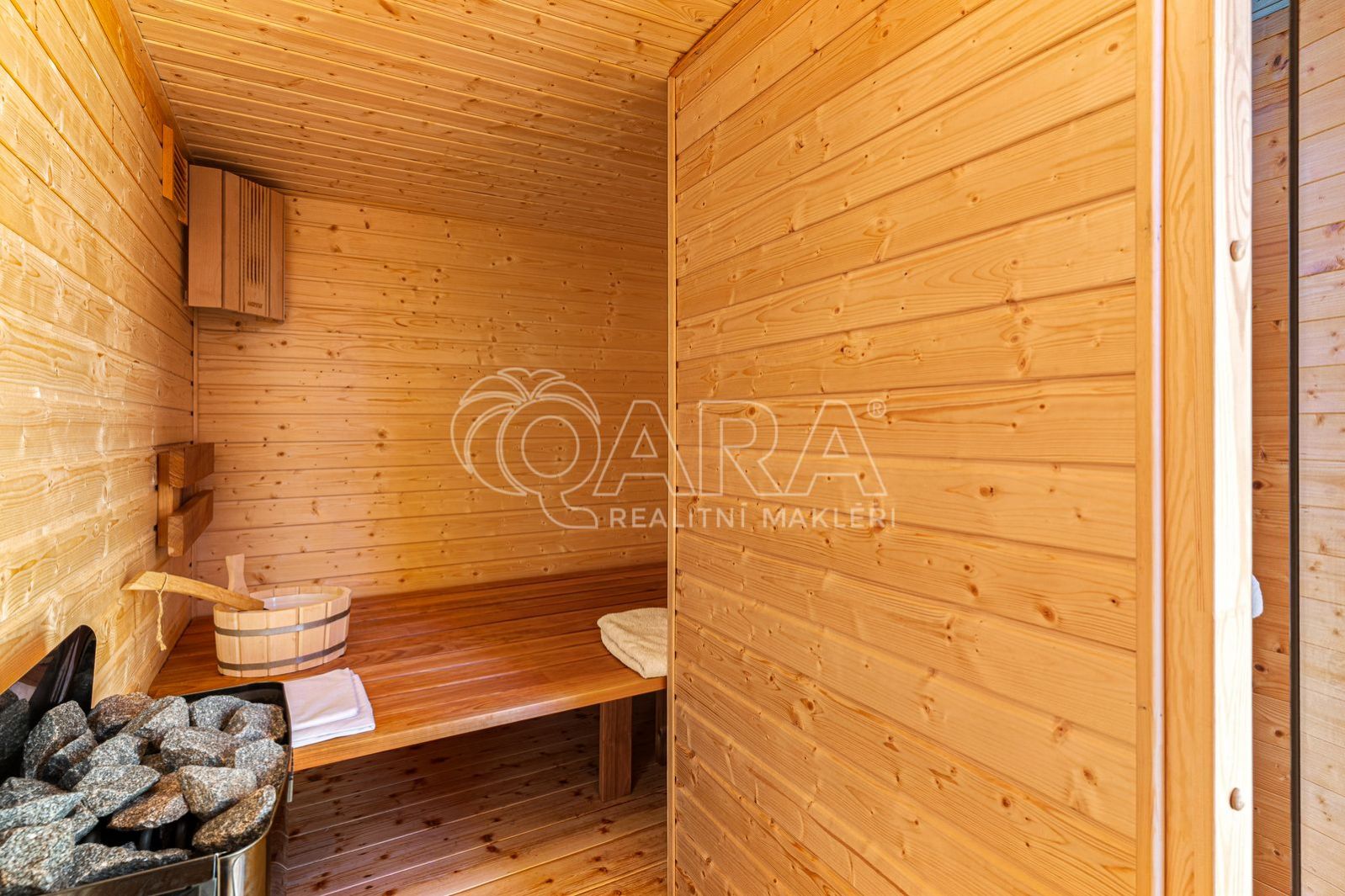 Velkou předností je upravená zahrada s automatickou závlahou, saunovým domkem a příjemným zázemím pro relax i společná setkání.