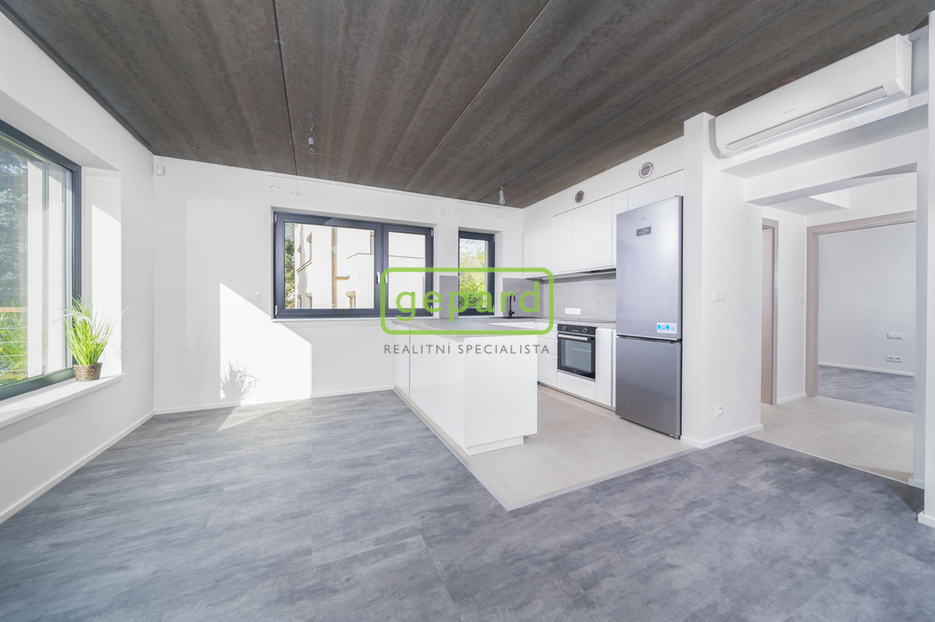 Interiér bytu vás okouzlí svou nadčasovostí a důrazem na detail. Nová kuchyňská linka v elegantním bílém provedení je vybavena vestavěnými spotřebiči – myčkou, varnou deskou, pečící troubou, digestoří + samostatně stojící lednice s mrazákem. Dvě koupelny a dvě toalety zaručují komfort pro celou rodinu.