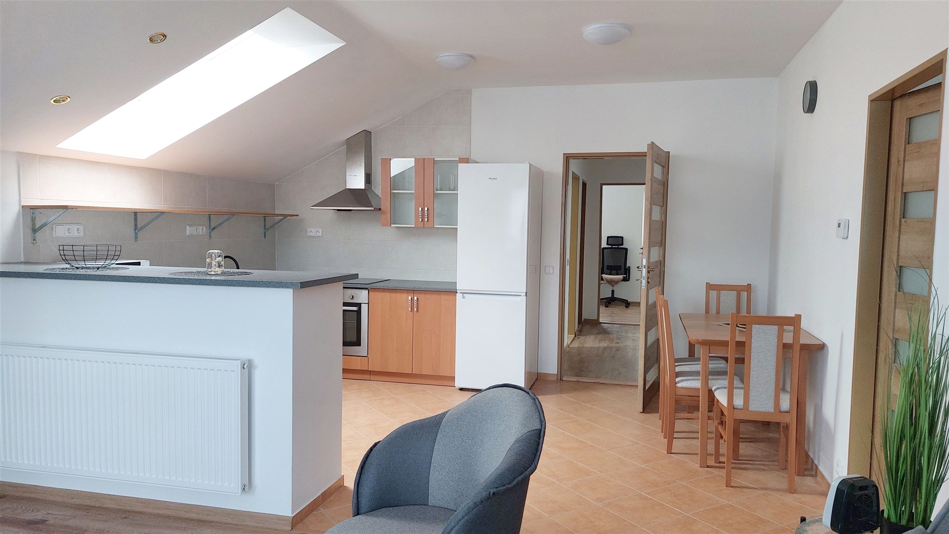 • Jde o kompletně zařízený byt – včetně nové kuchyňské linky, spotřebičů, pračky a sušičky