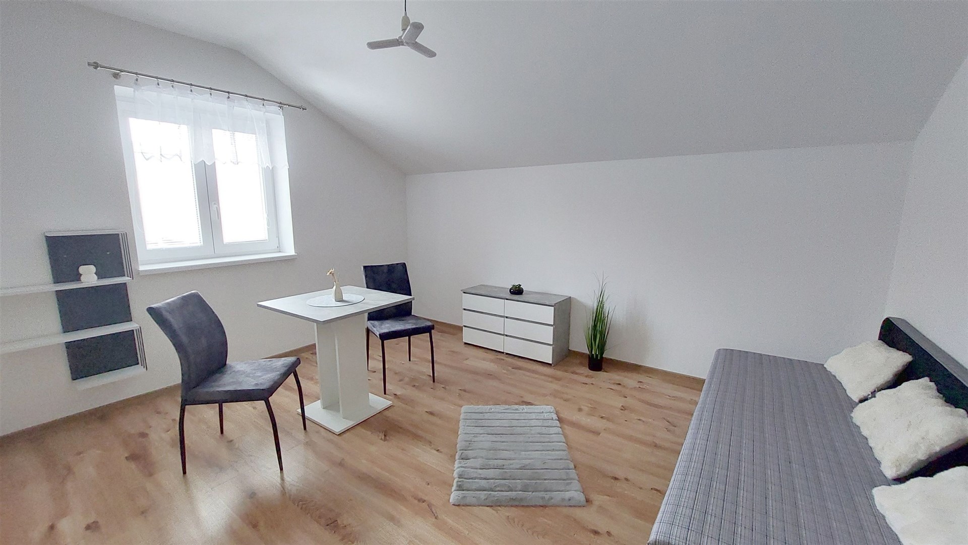 • Podlahy jsou plovoucí podlahy, dlažba v koupelně , WC, technické místnosti a kuchyni