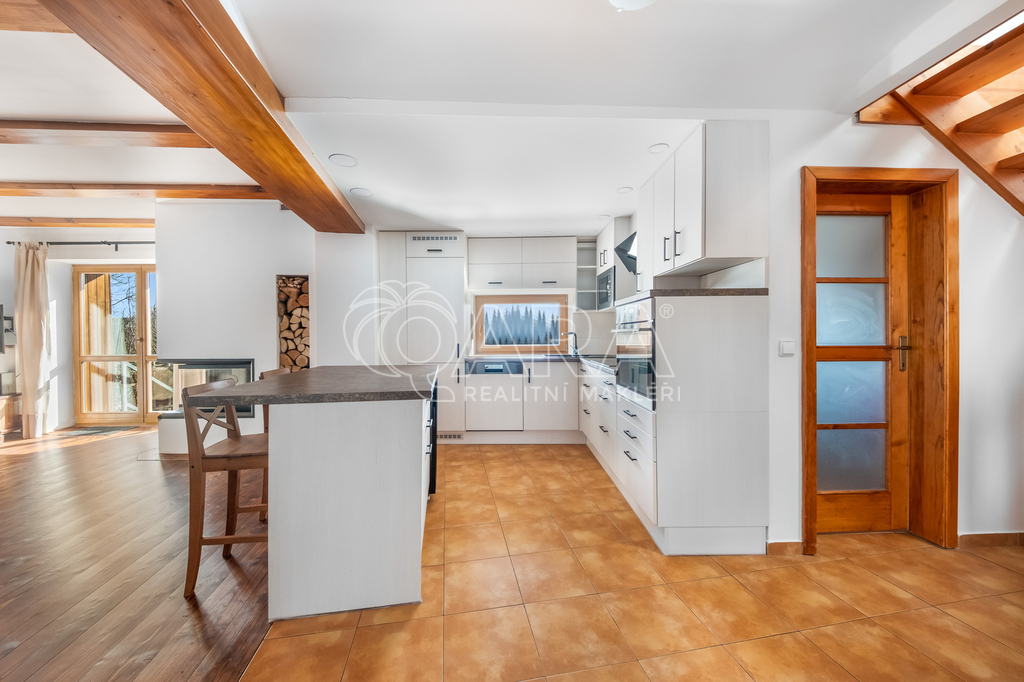 Byt vznikl při kompletní rekonstrukci domu v r. 2008, přičemž jeho majitel ho průběžně dále zdokonaloval a vylepšoval (podlahy, krb, zvukové izolace, nová kuchyňská linka z r. 2023, nová střešní okna Velux z r. 2024).