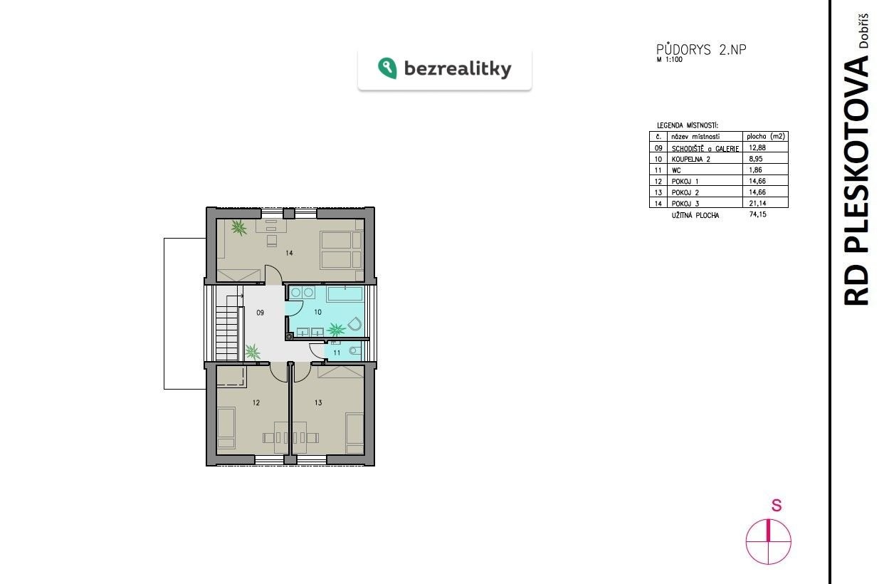 Dům o užitné ploše 152 m² na pozemku o rozloze 673 m² je navržen s důrazem na světlo a prostor. Srdcem domu je prostorný obývací pokoj s kuchyňským koutem, který je orientován na jižní stranu. Portálová okna zajišťují dostatek slunce po celý den a nabízejí uklidňující výhled do budoucí zahrady. V přízemí je kromě obytného prostou ještě jedna ložnice, koupelna a komora. V patře se nacházejí 3 ložnice, koupelna a samostatné WC.