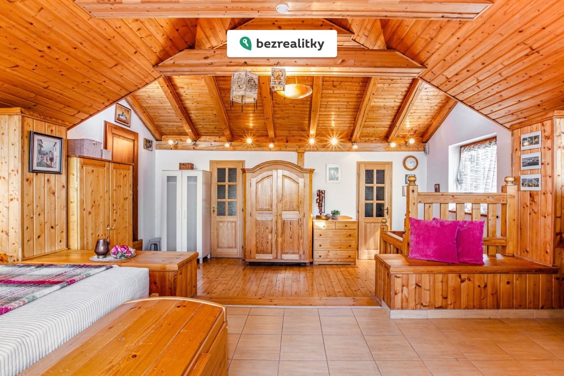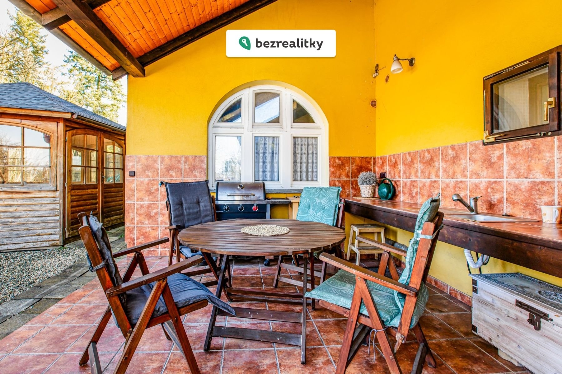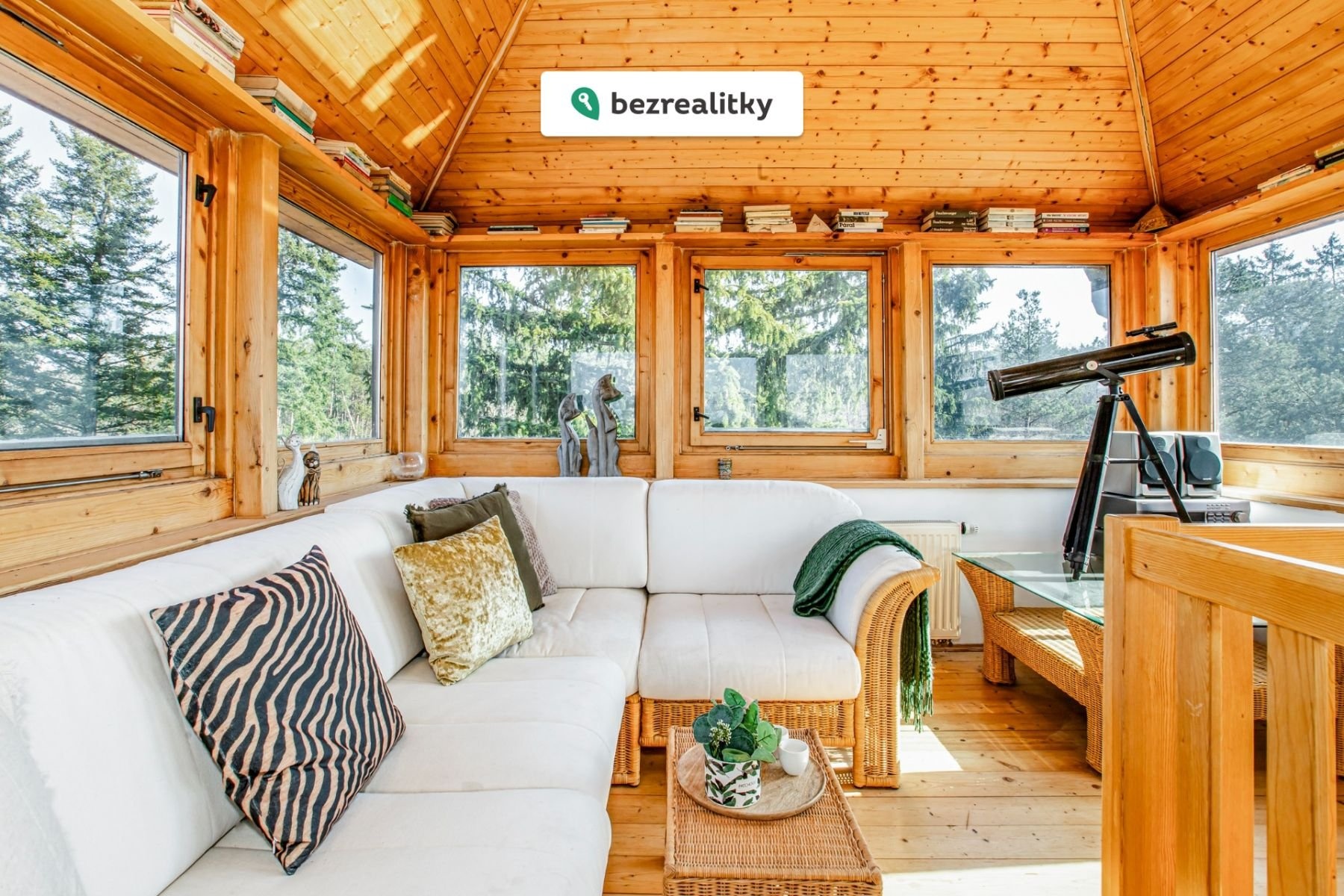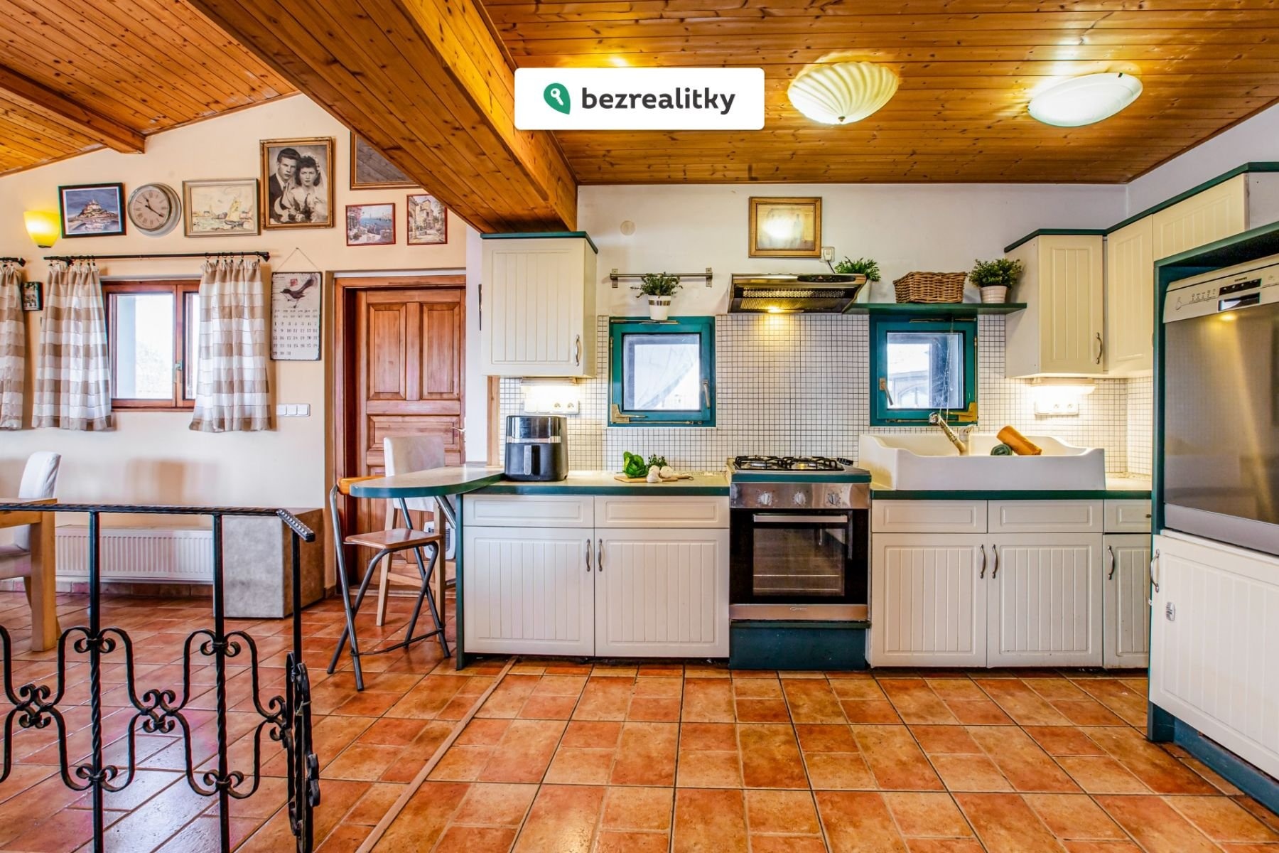 Původní chata prošla dvěma zásadními rekonstrukcemi s výrazným rozšířením. Výsledkem je domov, který působí útulně, ale zároveň překvapí svou velikostí a funkčností. Ve třech podlažích najdete atypické dispoziční řešení, dvě koupelny, dvě kuchyňské zóny a dokonce i relaxační místnost v nejvyšším patře. Dominantou domu je velká obytná místnost s kuchyní a vysokým stropem (51 m2), ze které je přímý vstup na velkou terasu (42 m2) orientovanou na jihozápad – ideální na dlouhé večery se sklenkou vína a výhledem do krajiny. Pozemek nabízí nejen soukromí, ale i bohaté zázemí: kryté parkování pro dva vozy, venkovní kuchyni s posezením a grilem, bazén (20 m³), altán, dětské hřiště, dílnu a prostorné sklady. Součástí domu je také vinný sklípek (2,3 m²) a malý pivní sklípek, oba přístupné zevnitř domu. Užitná plocha činí 183 m² bez venkovní kuchyně a zastřešené části.