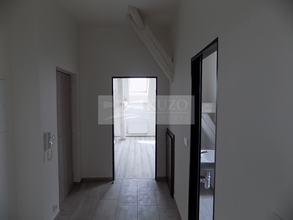 KUZO Partners Vám zprostředkují exkluzivně možný pronájem novostavby atypického podkrovního bytu 2+kk, 68 m2, v nově zrekonstruovaném bytovém domě, bývalém Špýcharu, který se nachází v těsné blízkosti centra města Dobříš. Byt v OV o celkové podlahové ploše 68 m2 se nachází ve čtvrtém nadzemním podlaží čtyřpatrového cihlového domu s výtahem a bezbariérovým přístupem. Členění bytu je následující: vstupní chodba, odtud vpravo vcházíme do kuchyně s komorou, novou kuchyňskou linkou a sporákem spojené s velkým atypickým obývacím prostorem, vlevo do prostorné obývací ložnice orientované na západ. Z chodby vstoupíme do samostatné koupelny se sprchovým koutem, umyvadlem, koupelnovým radiátorem a WC. Bytový dům, který disponuje deseti bytovými jednotkami, prošel nadstandardní kompletní rekonstrukcí a rozhodně uspokojí náročné klienty s požadavky vysokého standardu bydlení. Parkování je možné v těsné blízkosti domu. V blízkém okolí domu je veškerá občanská vybavenost. Nájemné včetně poplatků činí měsíčně 20000,- Kč ( 16500,- Kč nájemné a 3500,- Kč záloha na služby/ 2 osoby). Vratná kauce činí dvojnásobek nájemného 40000,- Kč. Energie bude převedena na nájemce. Ostatní informace v RK.