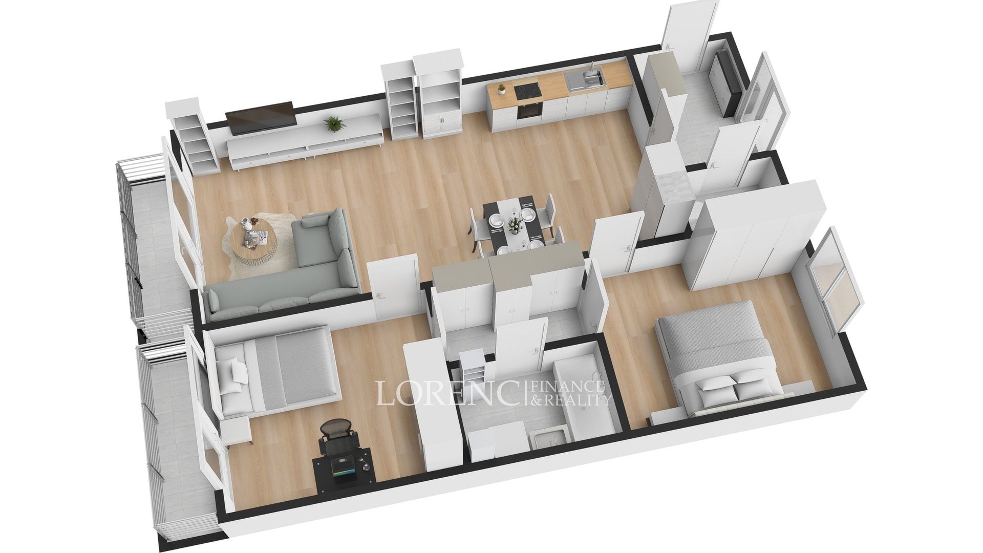 - Dispozice bytu: 3+kk