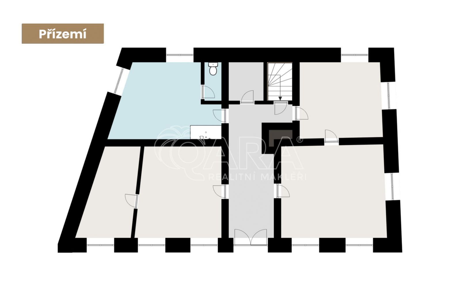 podkroví - pokoj s kuchyňkou (32,80 m2), pokoj (17,40 m2), koupelna s WC