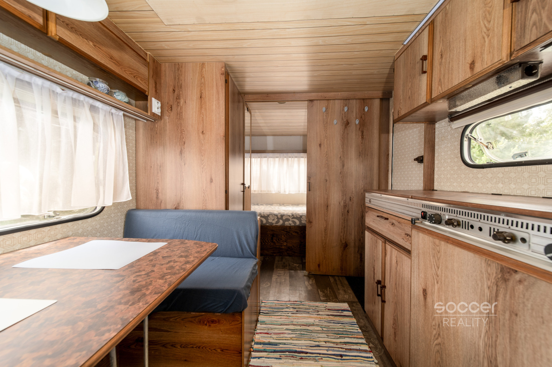 Rekreační karavan zajišťuje útulné zázemí a je vybaven nábytkem. Má sociální zařízení (chemická toaleta a venkovní sprcha jsou umístěny v přístřešku) a napojení na vodu a elektřinu. K dispozici je také plynový gril. Pro údržbu je zajištěn zahradní traktůrek a základní náčiní. Zahrada je kompletně oplocená (pod uzamčením) a parkovat je možné na oploceném pozemku.